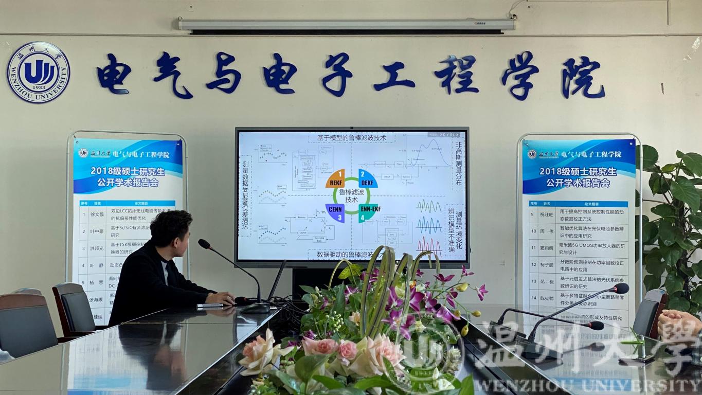 下午13:30报告准时开始,本次学术报告采取线上线下相结合的方式,每位学生按顺序依次进行自己的学术成果汇报,主要有新能源、低压电器,电力电子、控制算法、应用技术等方面的研究成果,整个会议室弥漫着浓厚的学习氛围。