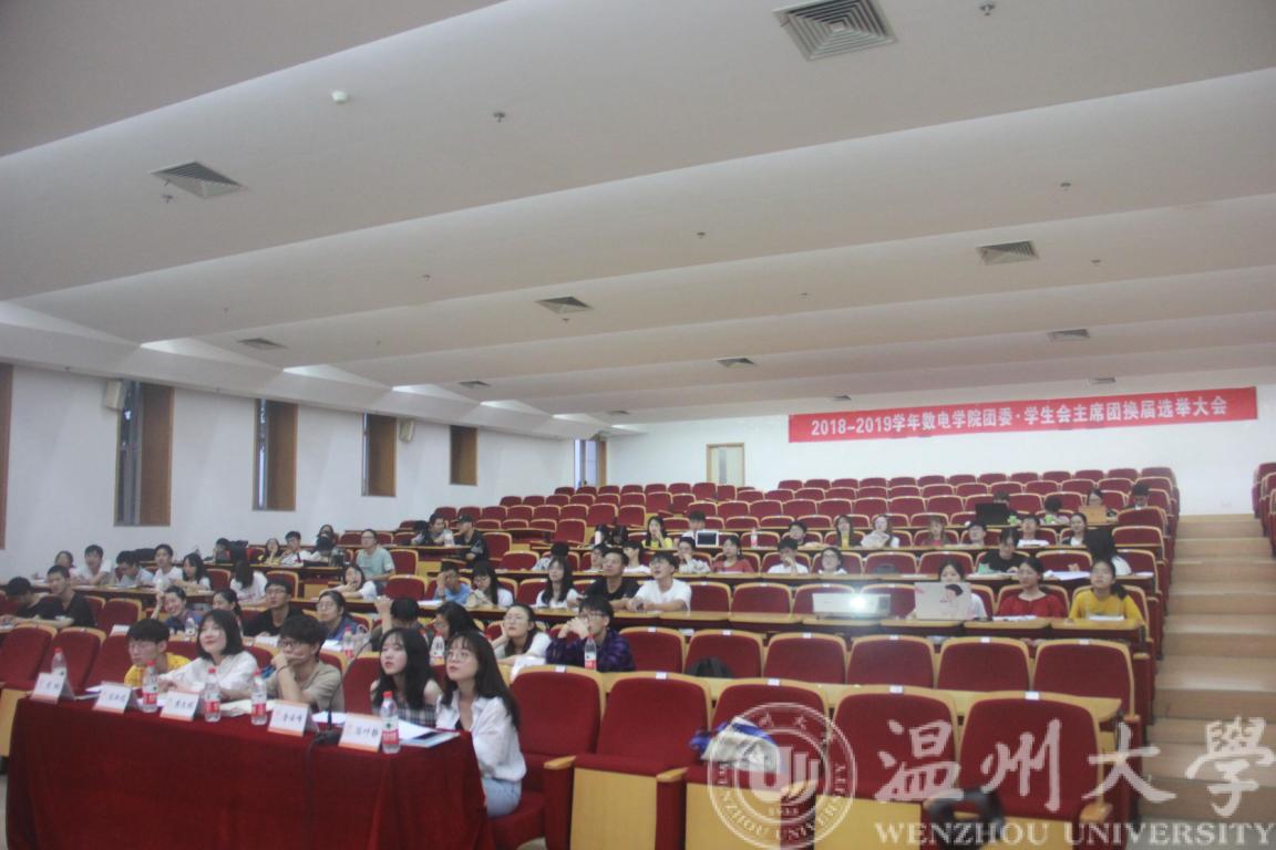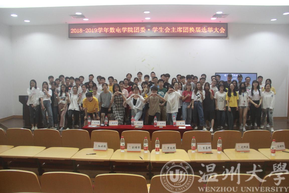 2019年6月23日,蜜桃视频 数理与电子信息工程学院在岩松堂二楼步青厅举行了2018—2019学年数电学院团委•学生会主席团换届大会,出席本次大会的有数电学院主席团、步青学区主席团代表、超豪学区主席团代表、步青学区党服代表、计票员:超豪学区党员邹洋和潘超凡以及全体数电学院团委•学生会的部长和干事。