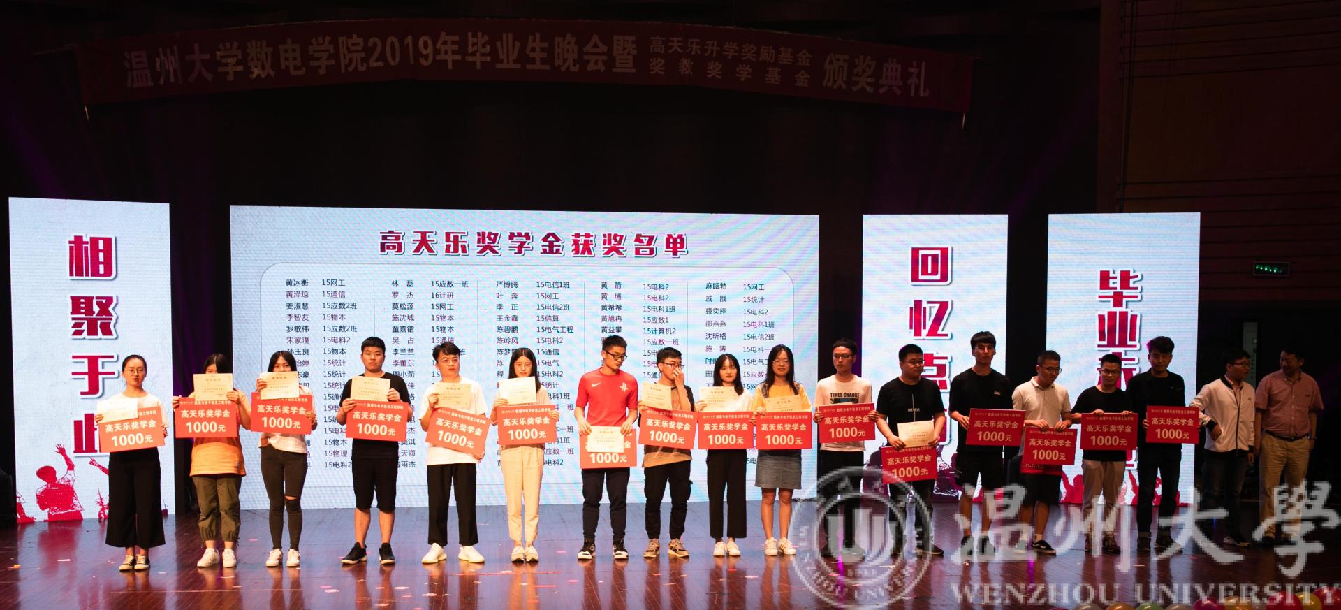 数理与电子信息工程学院2019年毕业生晚会暨高天乐升学奖励基金和奖教奖学金颁奖典礼于南校音乐厅举行,学院领导及学生科全体辅导员老师和毕业生代表应邀出席了本次活动。