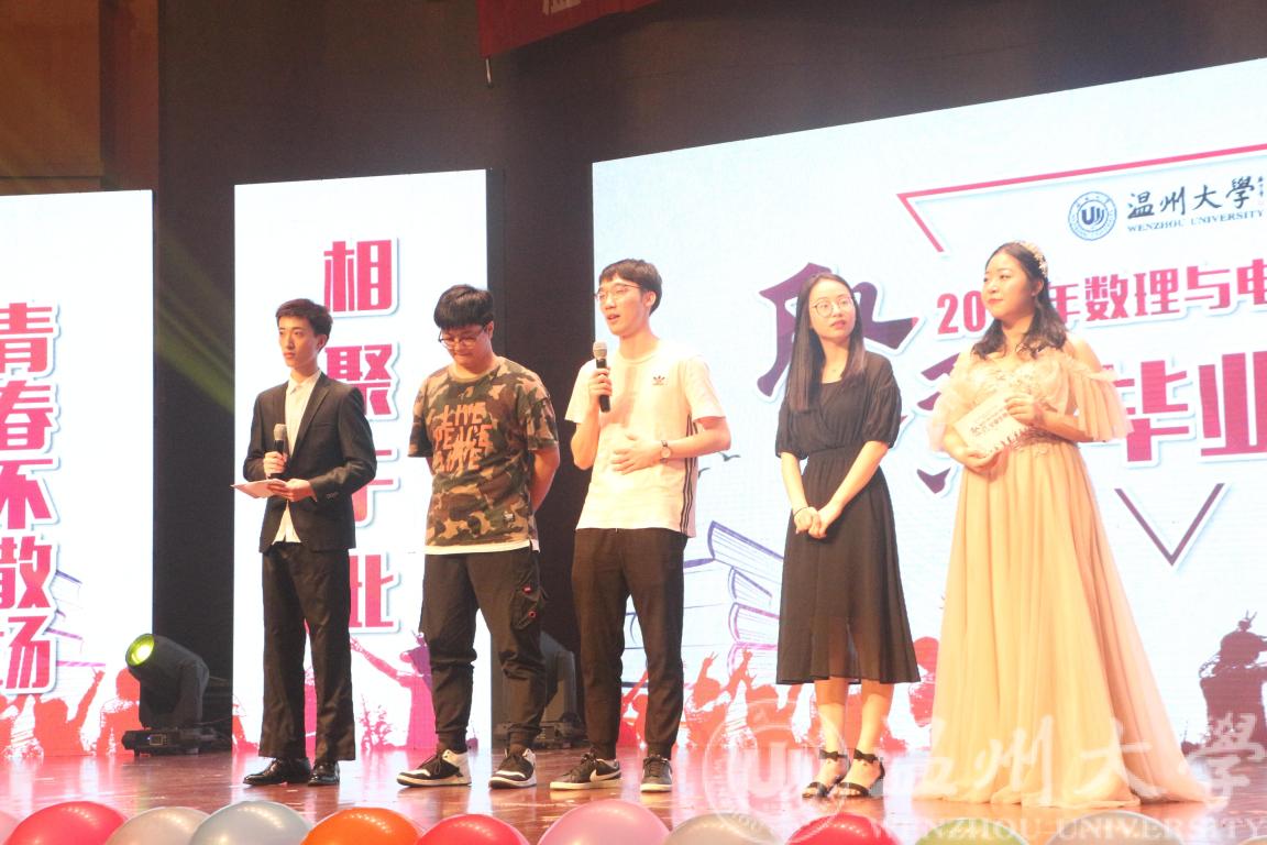 整场晚会以第一人称视角带领毕业生回顾了大学四年的往昔心路历程,7支VCR视频片段串联起从刚刚走入温大校园到毕业离校步入社会的各种场景。小品《男寝那些事》将寝室生活的一幕幕重现在大家的眼前。欢笑和感动之后是令人激昂的街舞串烧,动人的舞姿点燃了场下的每一位毕业生的热情,挥舞的荧光棒是内心喜悦的诉说。数电团学带来的舞蹈——《星球坠落》,更是将气氛推向了高潮。舞姿中的青春活力是对毕业生的美好祝愿。