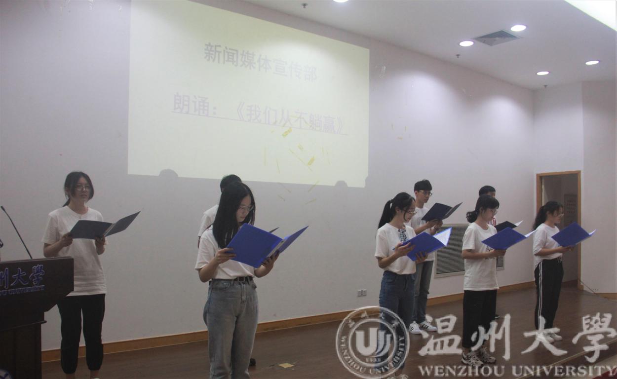 2019年6月12日,蜜桃视频 团委·学生会在南校岩松堂步青厅举行了2018-2019学年第二学期第四次全委会,本次出席会议的有学院学生科副科长林丽丽老师、学生科辅导员胡震鹏老师,团副陈叶静,主席黄文栋,副主席陈淑嫣、金云峰、周桐。