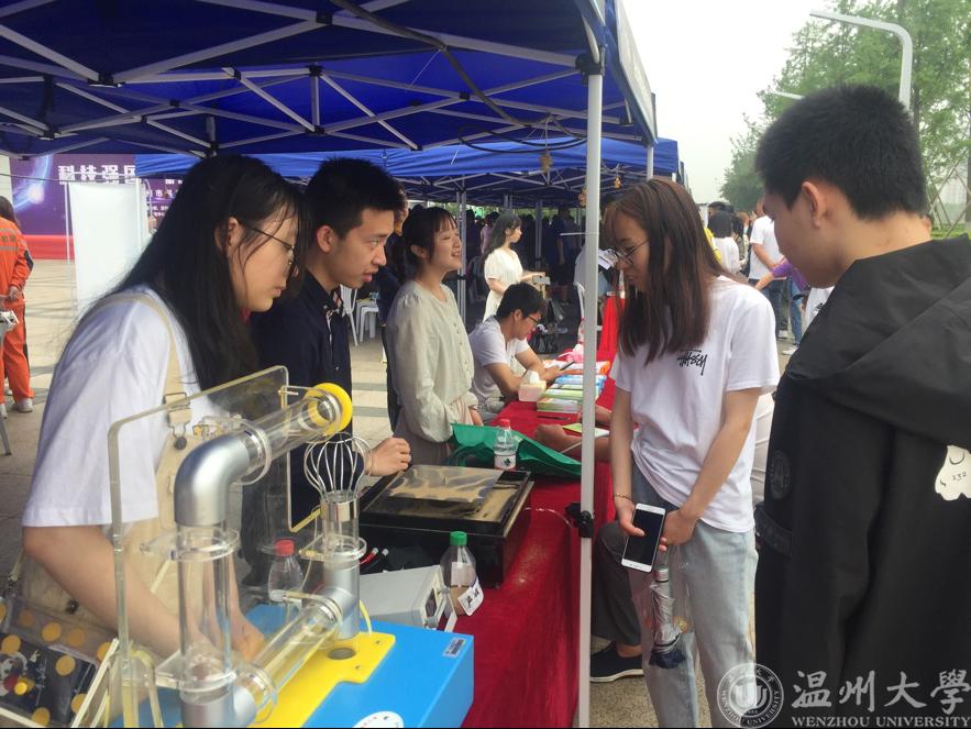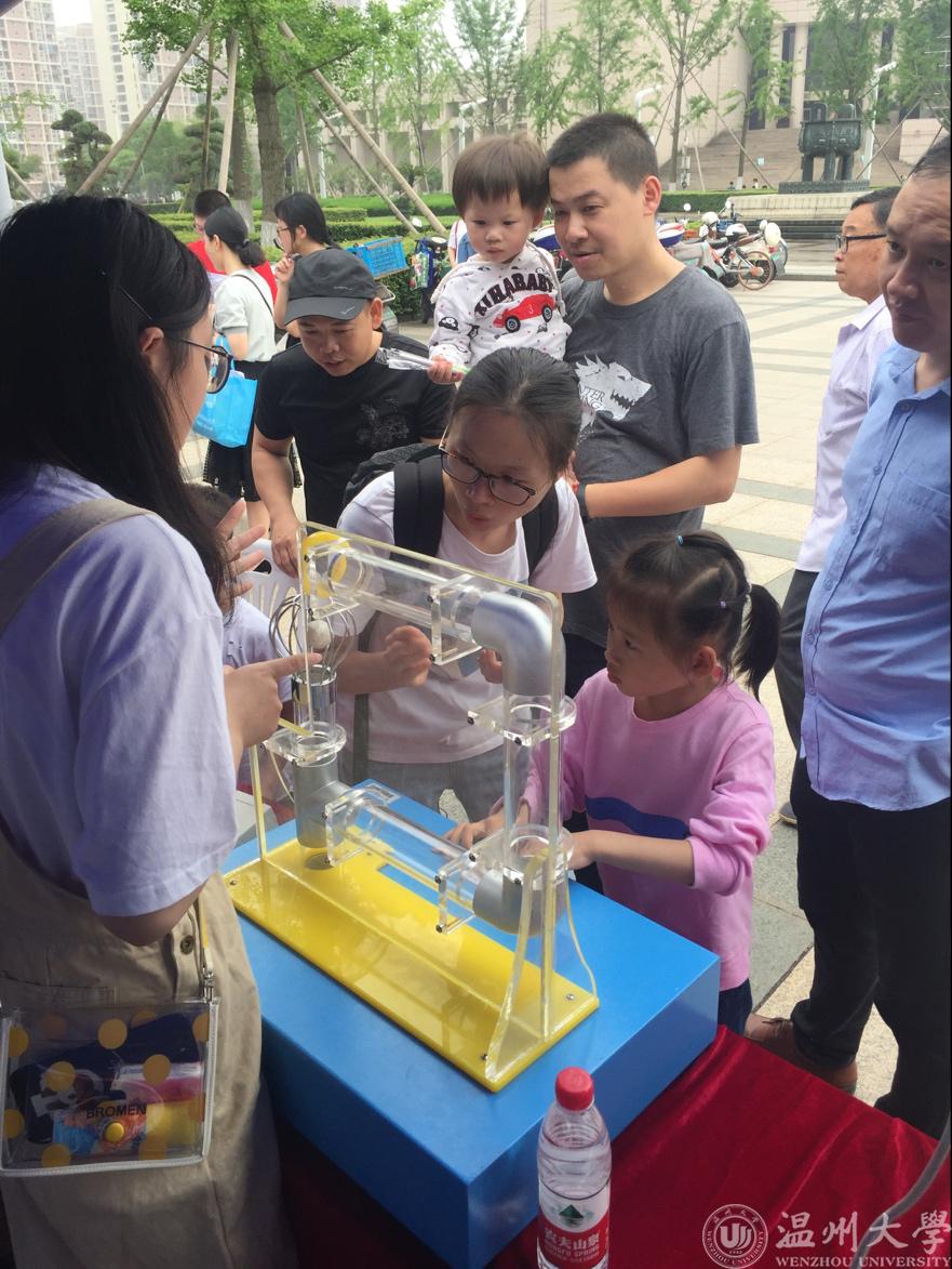 5月19日,2019年温州市科技活动周开幕式暨广场科普活动在温州市科技馆前广场隆重举行。蜜桃视频 物理演示实验展示厅,受校科协委派代表我校参展。