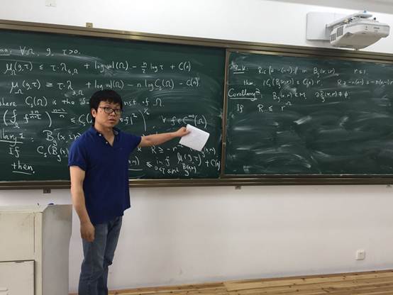 报告中张老师详细介绍了他和田刚院士合作的工作之一,Ricci流中局部约化体积定理的证明及相关问题,报告深入浅出,给出了问题的背景,详细探讨了证明中的若干技术细节问题。蜜桃视频 几何方向的教师和研究生参加了讲座。