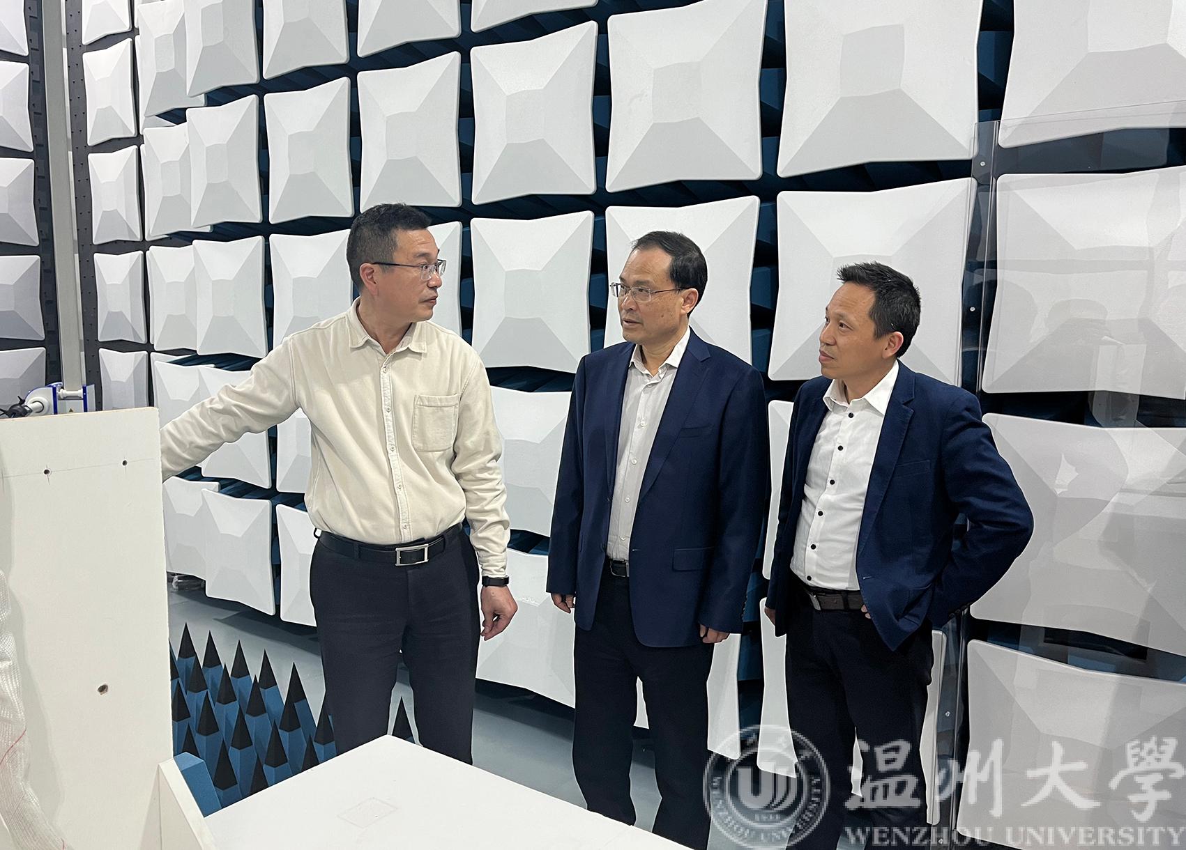 陈作荣一行考察了研究院的研发、检测实验室,在标准电磁兼容(EMC)实验室、机器人与物联网实验室、成果展厅内听取了林振权院长汇报研究院研发队伍在科技创新、技术开发、成果转化方面的工作进展,并与研究院科研人员开展了深入交流。