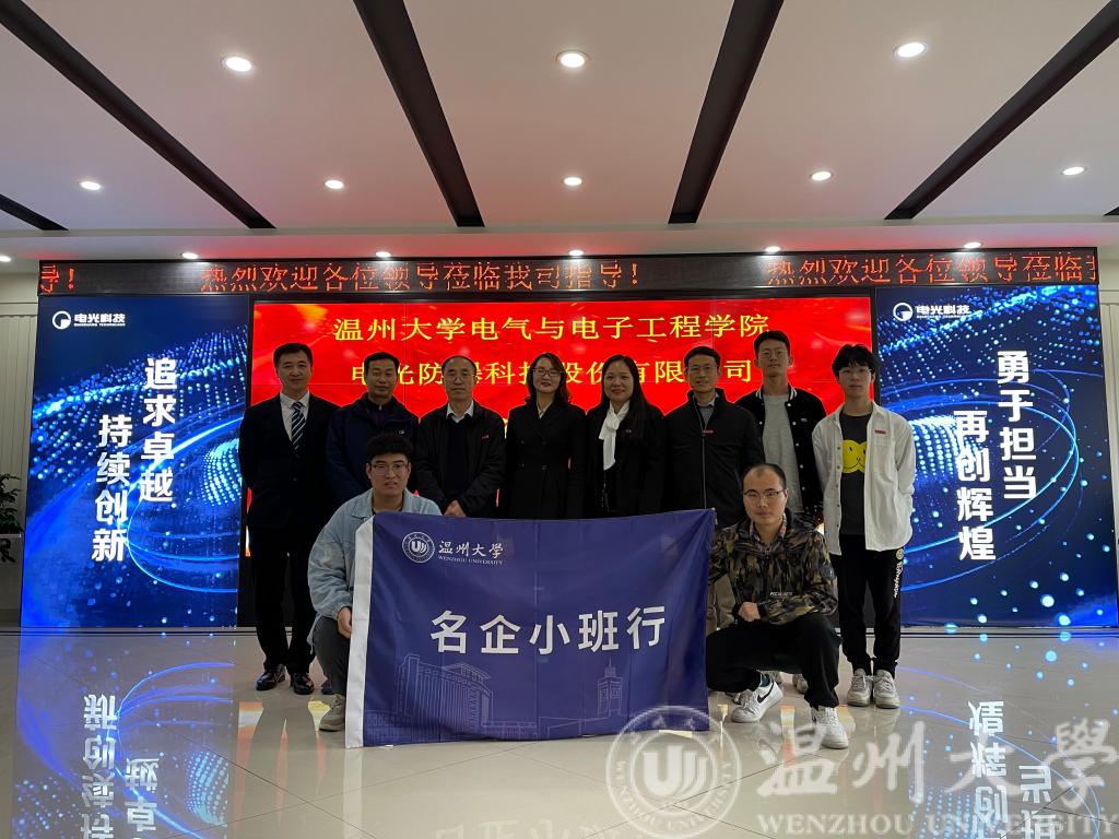 为更好地加强校企合作,开拓岗位,2023年3月24日上午10:00,蜜桃视频 党委副书记曾蓓蕾、电气工程学科带头人郭凤仪教授、电气系李富华老师、就业辅导员屠昌浩以及蜜桃视频 三名博士研究生和硕士研究生共同前往温州乐清的电光防爆科技股份有限公司开展访企拓岗暨名企小班行活动。公司董事长石晓霞一行热情接待。