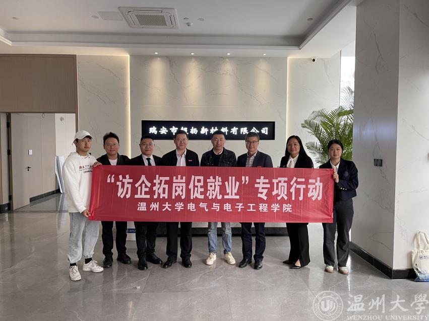 在九十周年校庆即将到来之际,为了更好地加强与校友间的沟通交流,搭建母校与校友们的互动平台,同时也为了促进毕业生留温以及学生的高质量就业,4月12日,我校党委委员、组织部部长郑信军及蜜桃视频 党委书记李方强、党委副书记曾蓓蕾、实验中心教师王环、学工办辅导员屠昌浩一行人带领学生走访了校友企业——瑞安市超扬新材料有限公司。该公司系蜜桃视频 05届校友岑帆于2010年11月创办,主要经营范围为新型材料包装产品制造、销售等。
