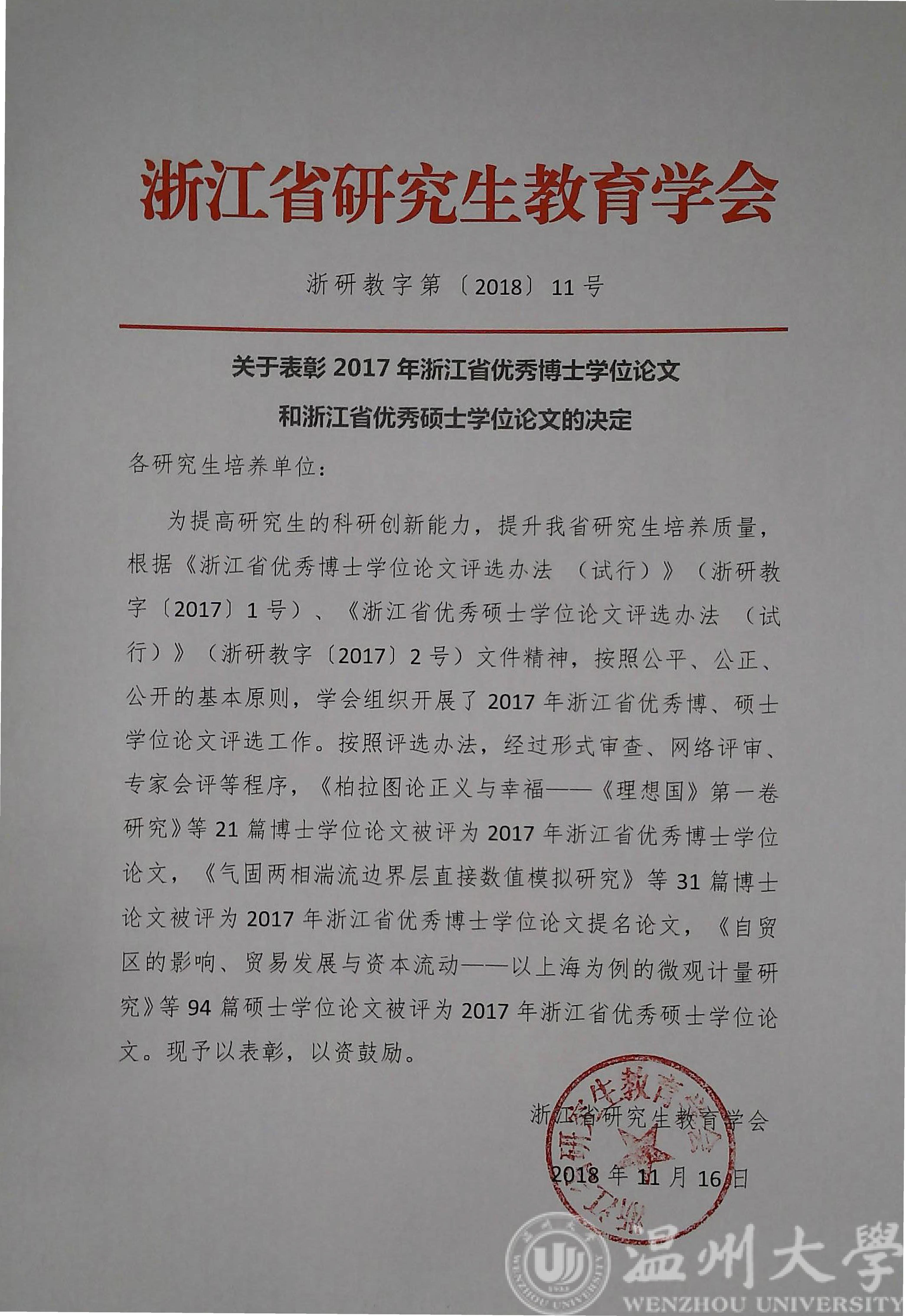 蜜桃视频 数电学院2014级研究生李蓓(导师:赵才地教授)硕士学位论文《一类MHD方程组解的渐近行为》被评为2017年浙江省优秀硕士论文。