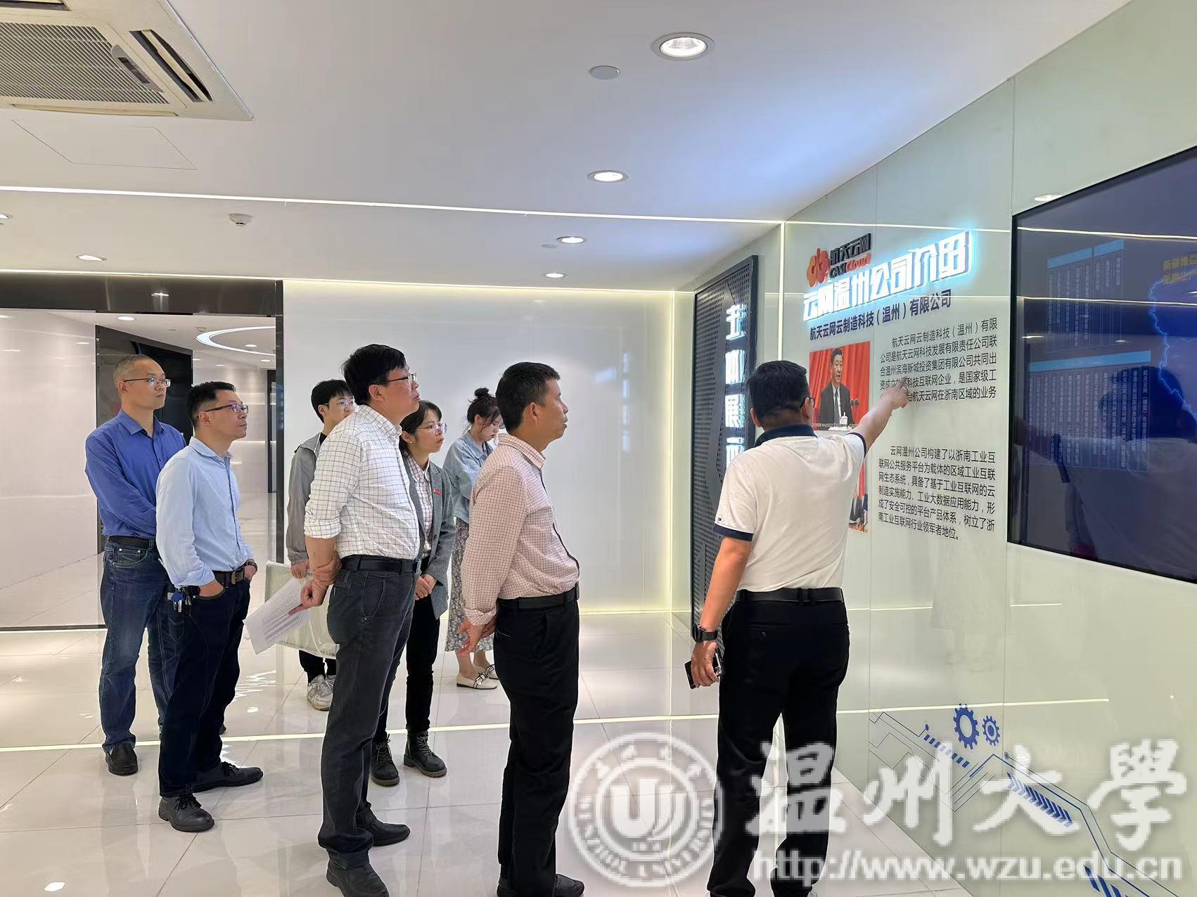 航天云网云制造科技(温州)有限公司书记、副总经理谭立新,副总经理黄勇达对蜜桃视频 一行来企考察交流、深化校企共建合作表示热烈欢迎,并带领蜜桃视频 人员进行公司参观,详细介绍公司的历史沿革及在相关领域取得的成绩。