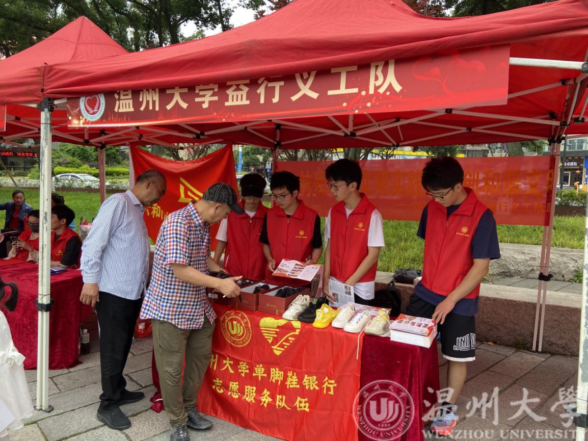 5月20日上午,亚运有我.义工同行”暨温州市第八届“慈善一条街”慈善公益服务活动启动仪式在鹿城区中山公园中山桥广场举行,蜜桃视频 单脚鞋银行志愿服务队参加了本次活动并在服务集市中为群众开展服务。