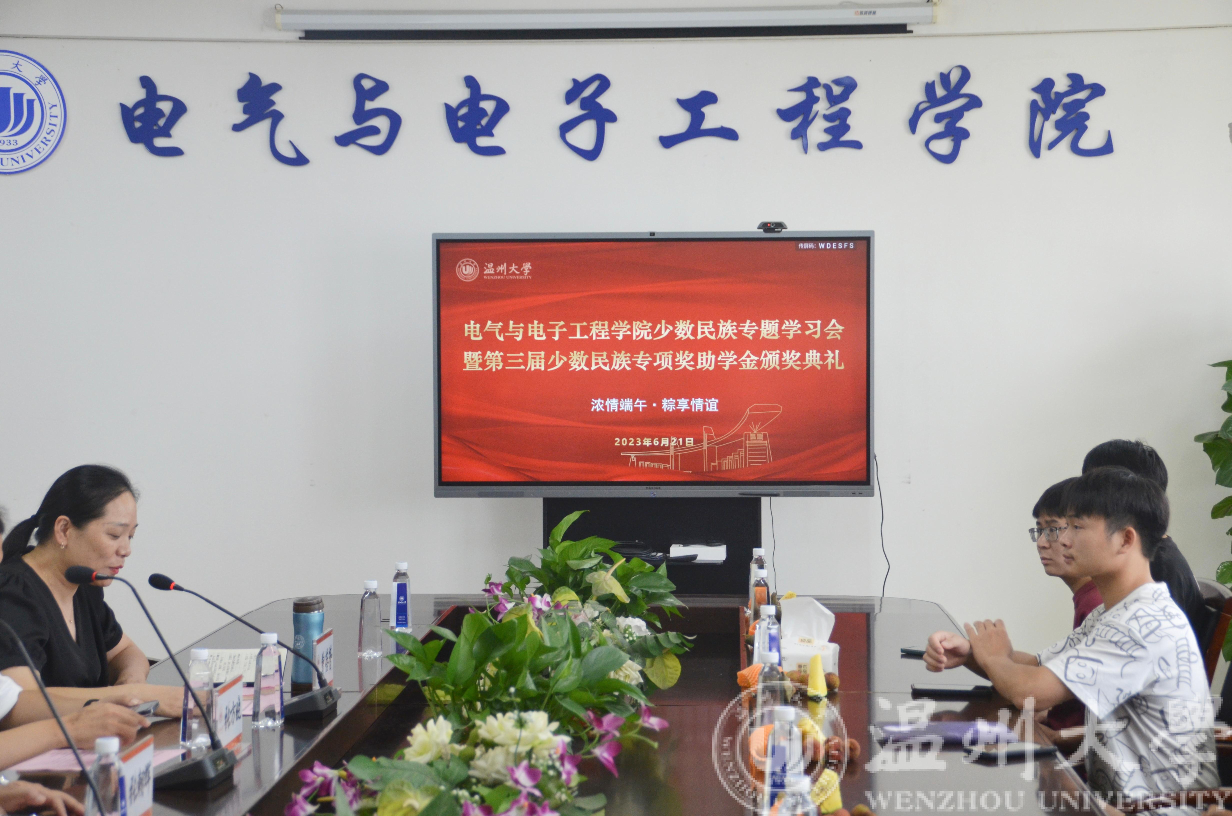 每年的农历五月初五,是中华民族传统的节日——端午节。为了弘扬优秀传统文化,增强民族团结和校友情谊,6月21日下午14:00,蜜桃视频 在1A-502举办少数民族专题学习会暨第三届少数民族专项奖助学金颁奖典礼。学院2001级校友张方晓,学生部副处长张朝辉,学生部新疆内派教师赵雨菲、学工办辅导员陈海彤以及学院少数民族同学出席本次颁奖典礼。本次颁奖典礼由学院党委副书记曾蓓蕾主持。
