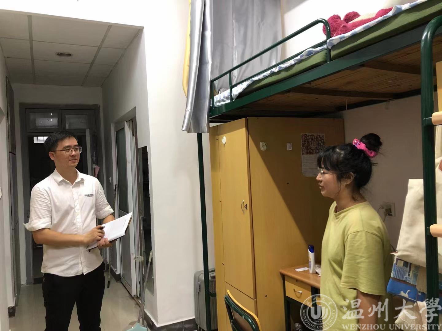 学院班主任、导师、辅导员逐一进入公寓进行安全大检查。针对夏日天气的特殊性,学院仔细排查是否存在使用大功率电器、劣质电器以及私拉电线等违规情况;同时,对易燃易爆物品、设施类安全隐患等问题进行了检查。安全排查过程中,老师们仔细询问学生宿舍生活状况,了解是否有人到寝室开展传教活动,提醒学生们夏季到来,要注意用电安全,及时处理垃圾废物,保持宿舍清洁;临近期末,鼓励同学们认真复习,做好学业规划。