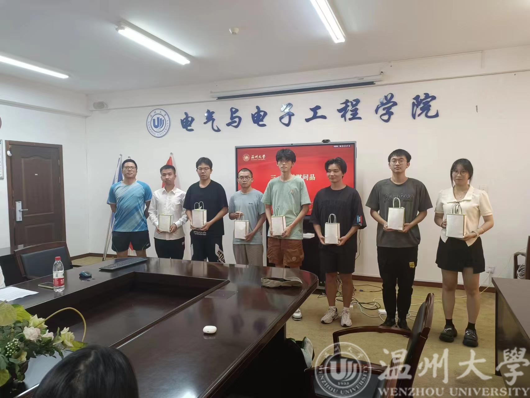廖晓安老师给各实践队赠送藿香正气水、花露水等防暑慰问品,希望同学们能拥有一个健康快乐的暑期实践活动。