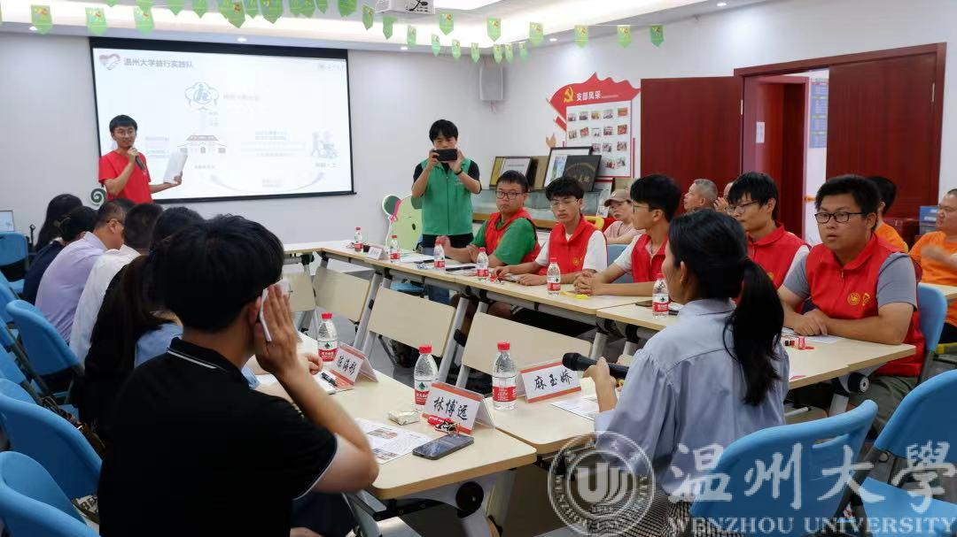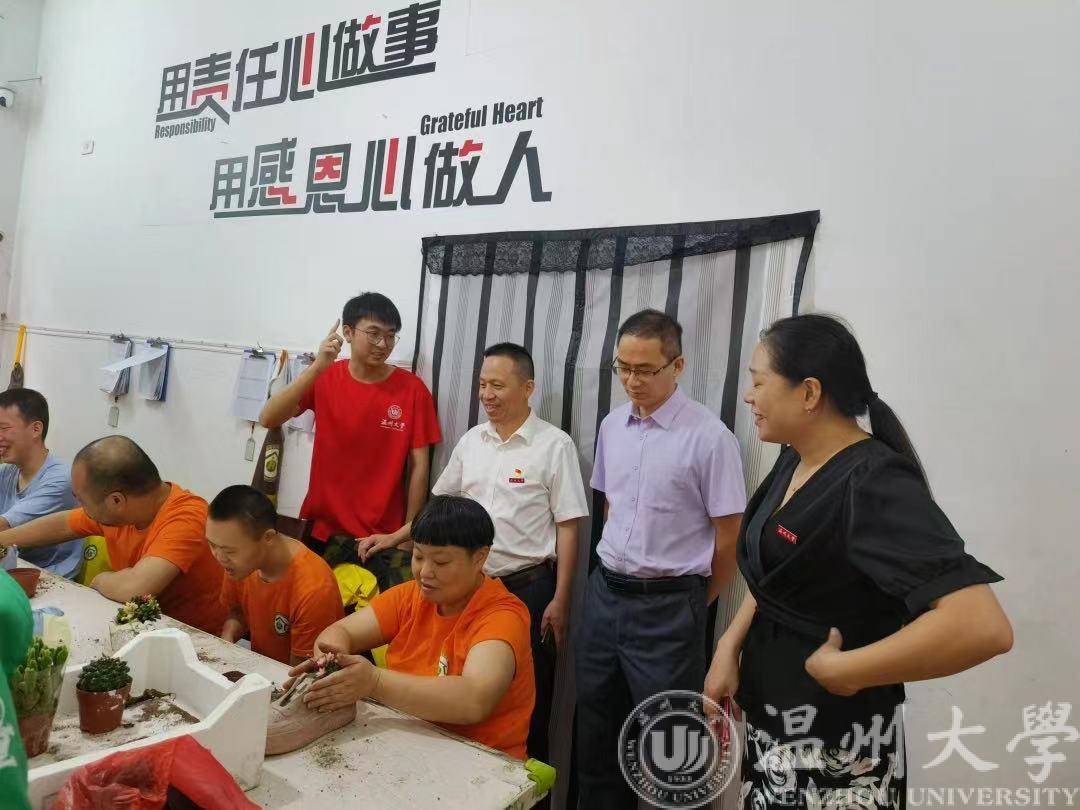 7月14日上午,蜜桃视频 党委委员、副校长王舜在龙湾区残联党组成员、副理事长林时察的陪同下,来到龙湾区青苗残疾人之家慰问蜜桃视频 益行暑期社会实践队。蜜桃视频 电子工程学院党委副书记曾蓓蕾、蜜桃视频 团委副书记徐瑶、蜜桃视频 团委韩新华、蜜桃视频 辅导员陈海彤等陪同慰问,龙湾区青苗残疾人之家项目负责人麻玉娇等热情接待王舜副校长一行。