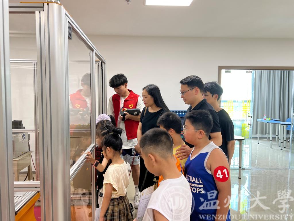 上午9:30左右,蜜桃视频 云智立暑期科创实践团队迎来了30余位参加科研活动的小朋友,他们对高科技的设备、VR展示厅与机器人项目等产生了浓厚的兴趣。云智立科创实践团队的队员们,身穿红马甲,亲切友好的向孩子们展示和演示机器设备。曾蓓蕾副书记一行参观了VR展厅、机器人小车、AI视觉分拣系统、工业机械臂等科普项目,了解了实践队智能制造公益活动的基本情况。