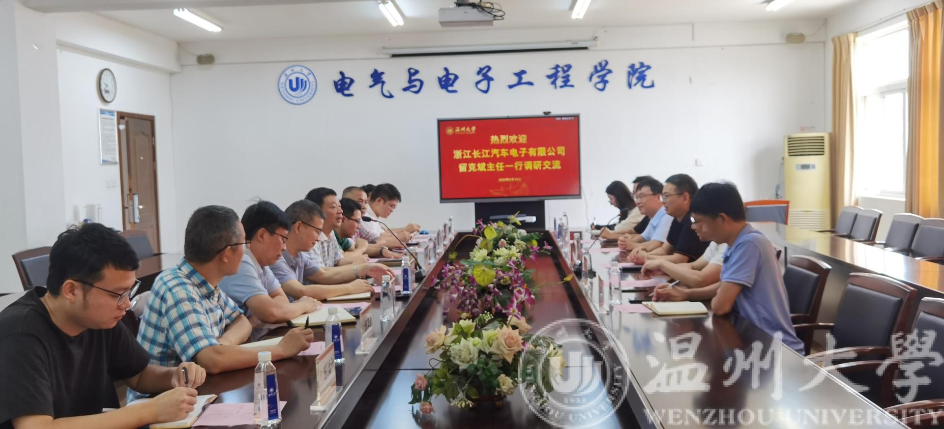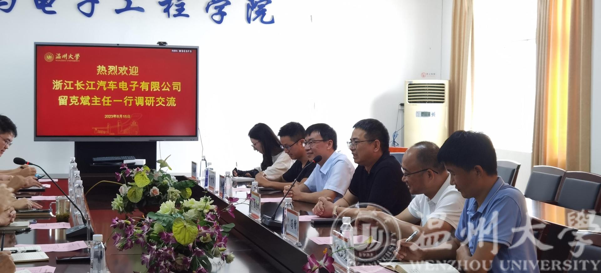 8月15日上午,浙江长江汽车电子有限公司研发部主任留客斌、人力资源总监冯锋等一行来蜜桃视频 访谈交流校企合作。蜜桃视频 汪鹏君院长、李方强书记及骨干教师参加了交流会。