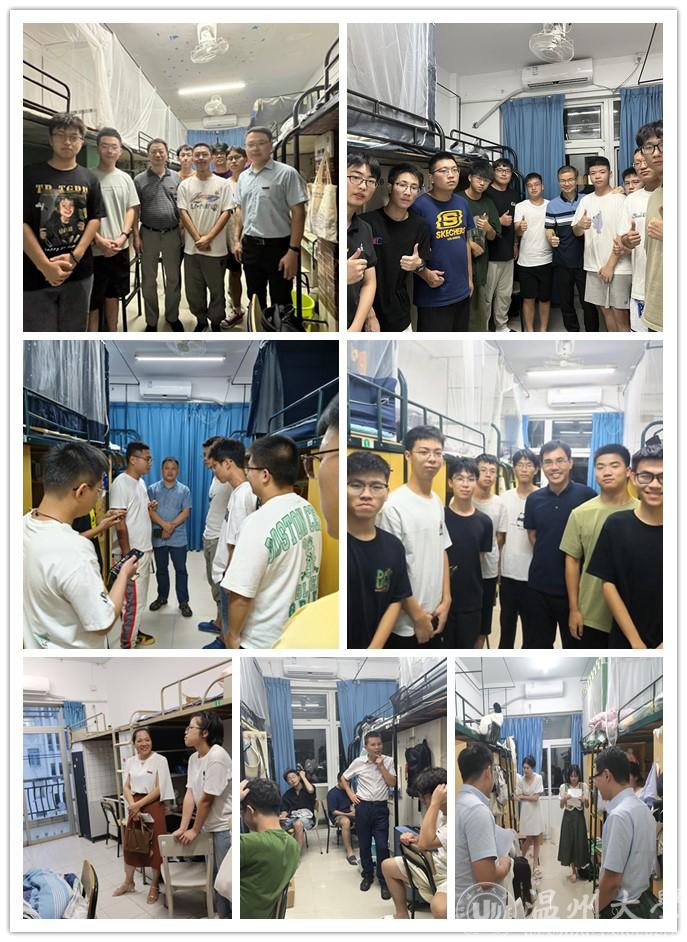 为了进一步了解新生的入校情况,及时了解学生的思想动态、心理状态,切实解决新生入学遇到的问题。新生报到日当晚,学院领导班子,深入学生宿舍,走访新生寝室,与大家深入交流,关心大家的适应情况。除了关心了解同学们的学习、生活之外,更是强调:宿舍作为学生的重要生活和学习场所,同学们要时刻保持通风,做好个人及宿舍卫生,注意用电安全,禁止使用违规电器,禁止在寝室内开展宗教活动,希望同学们在健康、安全的环境下快乐地学习。