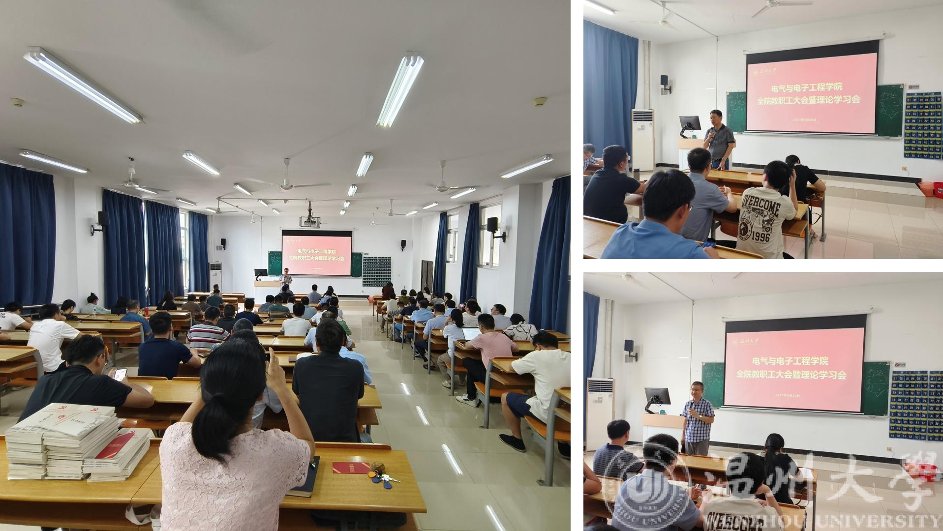 召开全院教职工大会暨理论学习会,会议由学院党委书记李方强主持,全院教职工参加会议。