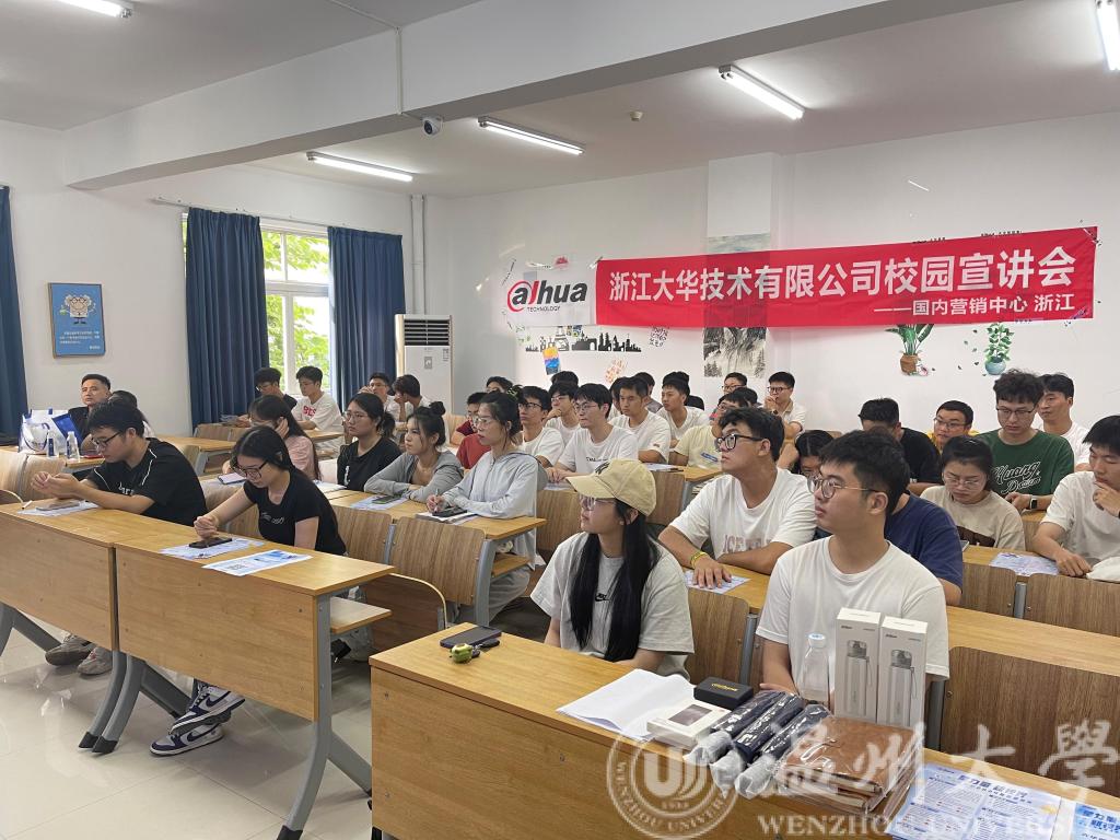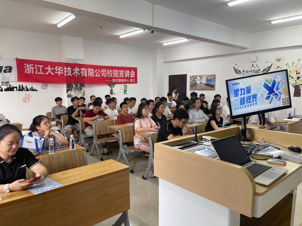 2023年9月20日下午16:00,浙江大华技术股份有限公司在蜜桃视频 1A102教室开展2024届毕业生秋招宣讲会。浙江大华技术股份有限公司人事总监陈彧、HRBP张笑迎、HRBP翁欣怡等七名企业代表、蜜桃视频 就业辅导员屠昌浩以及五十余名本硕应届毕业生参加了本次宣讲会。