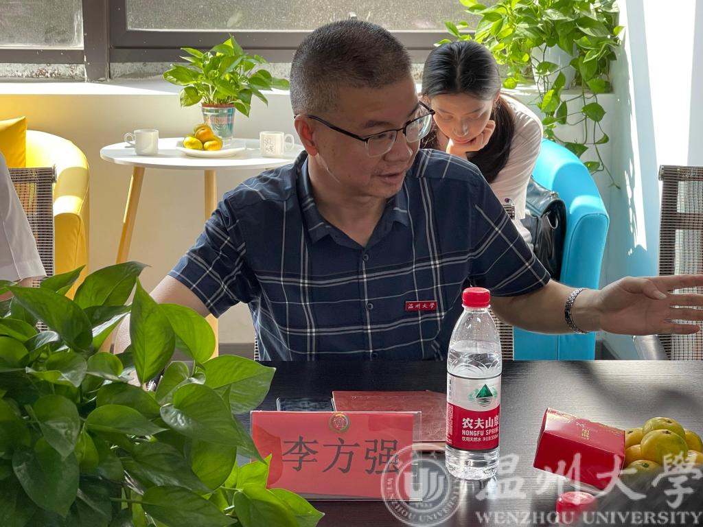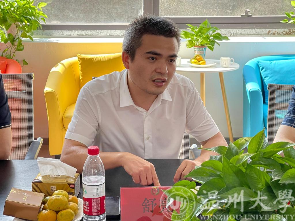 乐清校友会会长王拓宇向学院党委书记李方强带队走访乐清校友会表示热烈欢迎。他向与会各位介绍乐清校友会以及校友企业的相关情况,他表示,综合考虑乐清的产业布局与发展现状,最终决定与蜜桃视频 结对合作。他希望乐清校友会在与温大蜜桃视频 高质量对接合作之下,乐清校友会能够更好地服务于广大校友,更好地服务乐清电器产业发展。