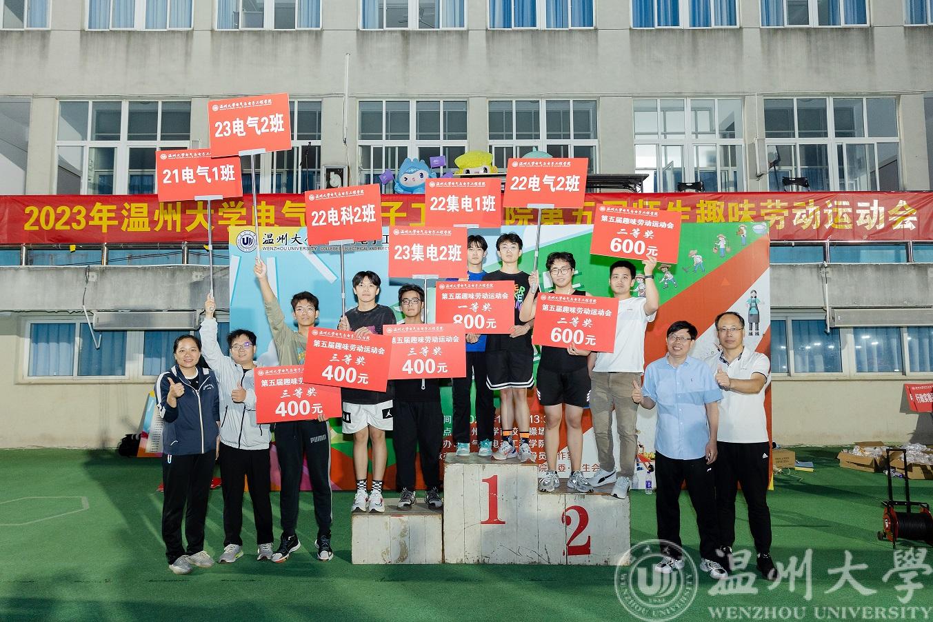 全部比赛环节结束,就到了颁奖环节。学院党委副书记曾蓓蕾,学院电气系主任吴平,电子系主任庄友谊,为获奖班级颁奖。在美丽的夕阳下,为本届师生趣味劳动运动会画上了圆满的句号。