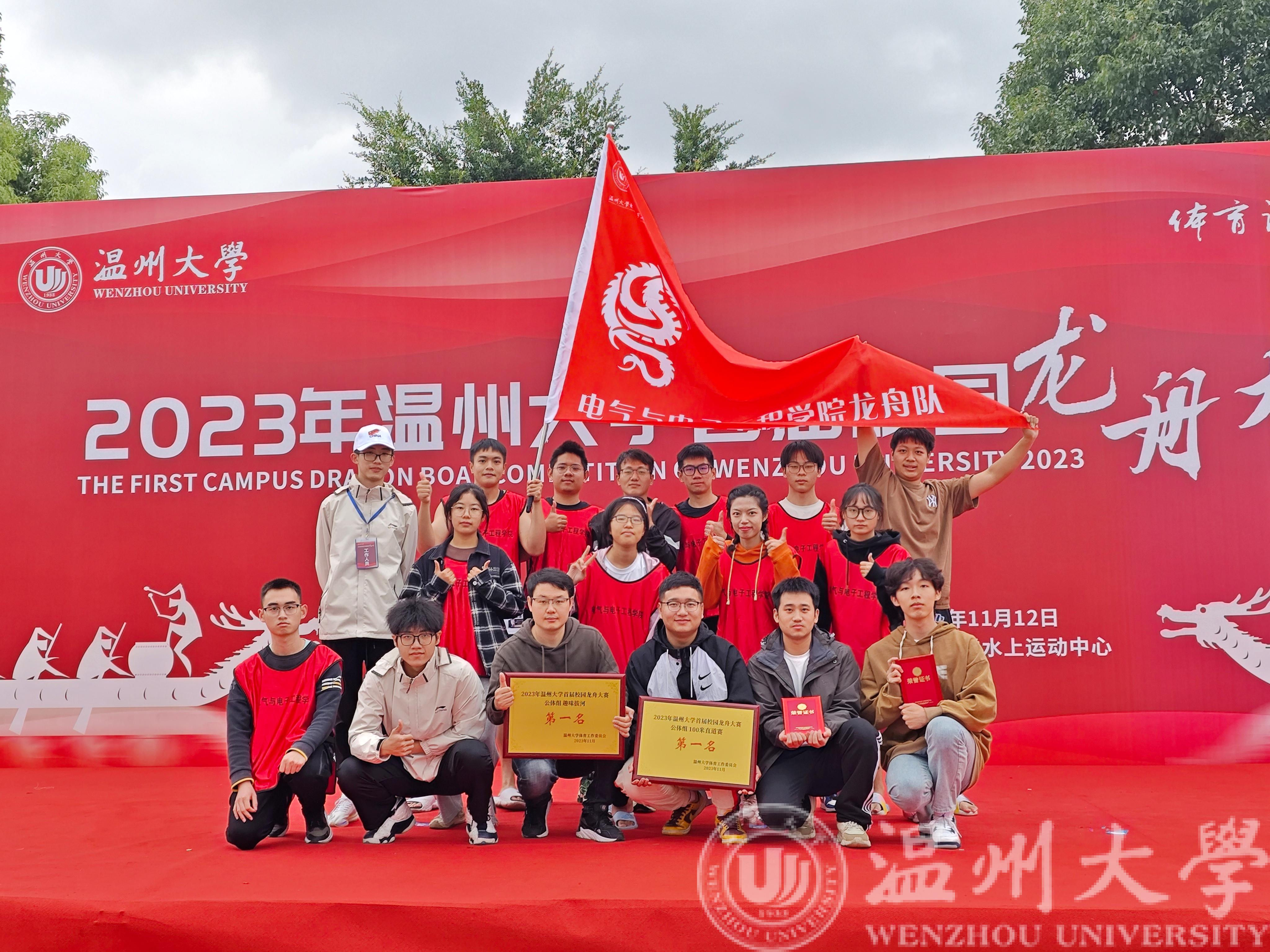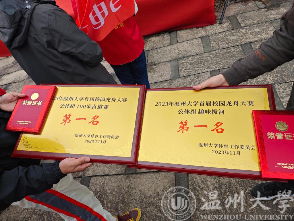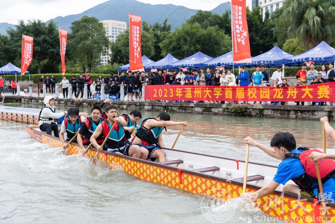 11月12日上午9时,2023年蜜桃视频 首届校园龙舟大赛在南校区龙舟码头举行,蜜桃视频 师生代表队齐心协力、奋勇争先,经过激烈角逐,蜜桃视频 代表队在公体组100米直道赛和趣味拔河竞技赛中均获得第一名,夺得双料冠军。