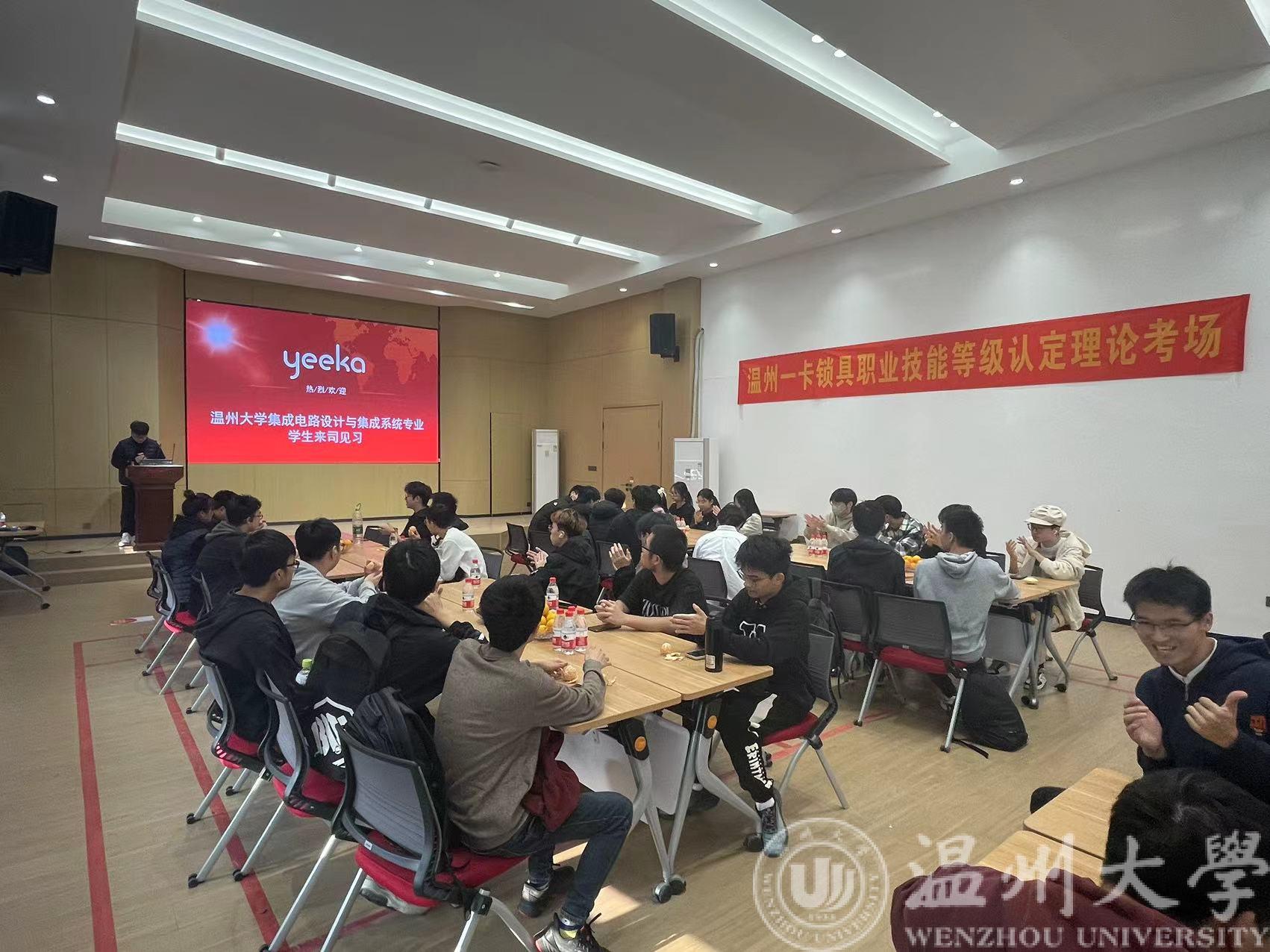 2023年11月24日,蜜桃视频 22级集成电路设计与集成系统专业学生在电子系党支部书记管晓春和班主任叶浩两位老师的带领下参加了专业见习活动,分别参观了温州一卡锁具科技有限公司和蜜桃视频 智能锁具研究院。