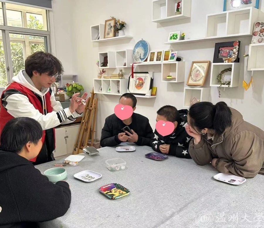 在龙湾区青苗残疾人之家,志愿者们还参与了残疾人的日常生活,和他们一同装笔、封盒、布置房间。在与残疾人亲切交流的过程中,志愿者们切实地了解他们的需求和困难,不断改进帮助方式,让残疾人感受到社会的温暖与关爱。志愿者们还分发了,蜜桃视频 单脚鞋银行的文创产品,看到他们脸上的笑容,同学们们感到温暖幸福。