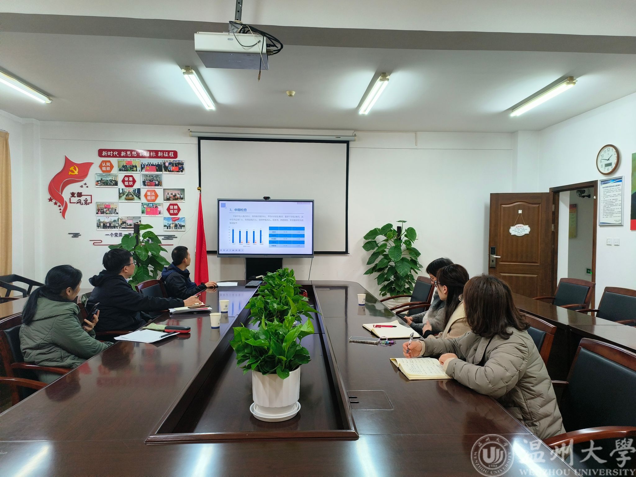 会上,陈孝敬副院长介绍了学院毕业设计的总体安排和学院毕业设计中期检查的情况。针对存在的问题,已将所有学院检查组成员的检查意见及时发布给各位指导老师,要求指导老师根据检查组的反馈意见,查看所指导的学生在毕业设计材料中存在的问题,并抓紧改进和督促学生改进目前存在的问题。同时他表示,针对学生材料上交不及时,以及老师出题,指导不及时,学院也在讨论相关的制度和对策。