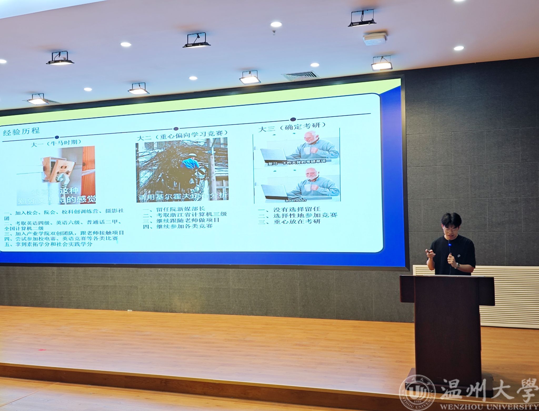 四位优秀的学长结合个人的学习经历和专业特长,与学弟学妹们分享了学习、科研及社会实践上的经验。