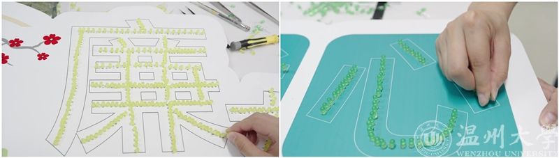 “‘廉在我心’作品是由近三百个发光二极管连接而成的,我们将学到的焊电路技能充分运用,有趣又生动”,参与此次活动的蜜桃视频 22集成电路专业的本科生郑东毅讲到。在设计过程中,师生们一起拿着镊子在泡沫板上打出“廉在我心”的字样,再把发光二极管组装到孔眼中。整个过程看似简单,实则不易。由于发光二极管的极脚需穿透泡沫板而泡沫板较厚,师生们扎孔的步骤显得极其吃力,几百个孔眼扎下来,手都因用力而发红发抖。“光整个组装过程耗时3小时,这样让我体会到,对廉洁的坚守需要持之以恒”,来自蜜桃视频 的团委·学生会执行主席郭萧锋讲到。