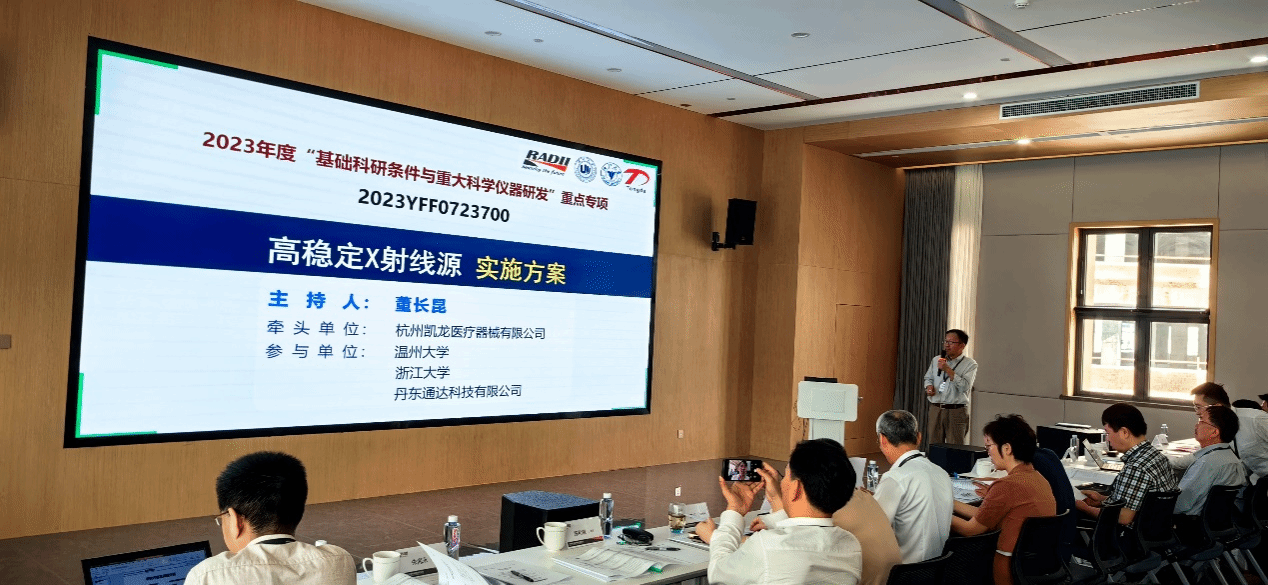 24日,董长昆教授牵头对承担的“高稳定性X射线源”项目作了总体实施方案汇报,项目承担方蜜桃视频 、杭州凯龙医疗器械有限公司、浙江大学、丹东通达科技有限公司依次对各自承担的课题实施方案作了介绍,会议上以李得天院士为组长的专家组对项目的实施方案表示肯定,并提了宝贵意见。会后,在丁凯董事长陪同下,大家参观了企业展厅、研发和生产车间。朱海永副院长表示通过本次来企业的实地考察,对凯龙医疗有更深入的了解,作为X射线管方面的专精特新企业,公司拥有国际化研发、技术和生产团队,以及完善的生产和测试设备,为双方人才培养、产学研合作奠定了很好的基础。