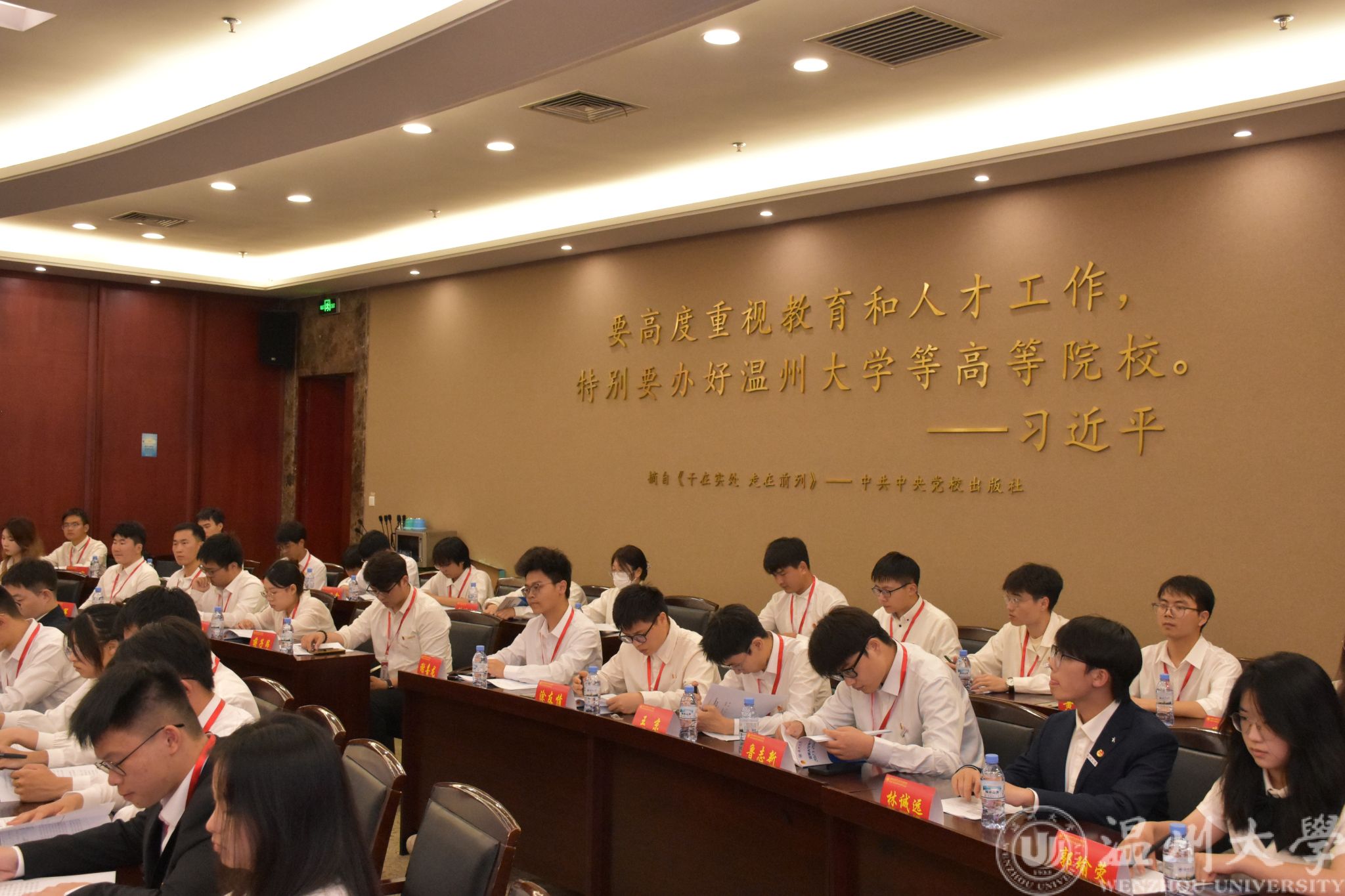 2024年5月31日18时30分,蜜桃视频 在南校区岩松堂白鹿厅隆重召开了2023-2024学年学生代表大会。学院党委副书记曾蓓蕾出席了此次会议,学院团委书记廖晓安老师、团委副书记潘龙飞老师,辅导员陈海彤老师、屠昌浩老师、余明新老师、潘文老师,以及团委学生会现任主席团成员,本科生、研究生60余位学生代表参与了此次大会。会议由潘龙飞主持。