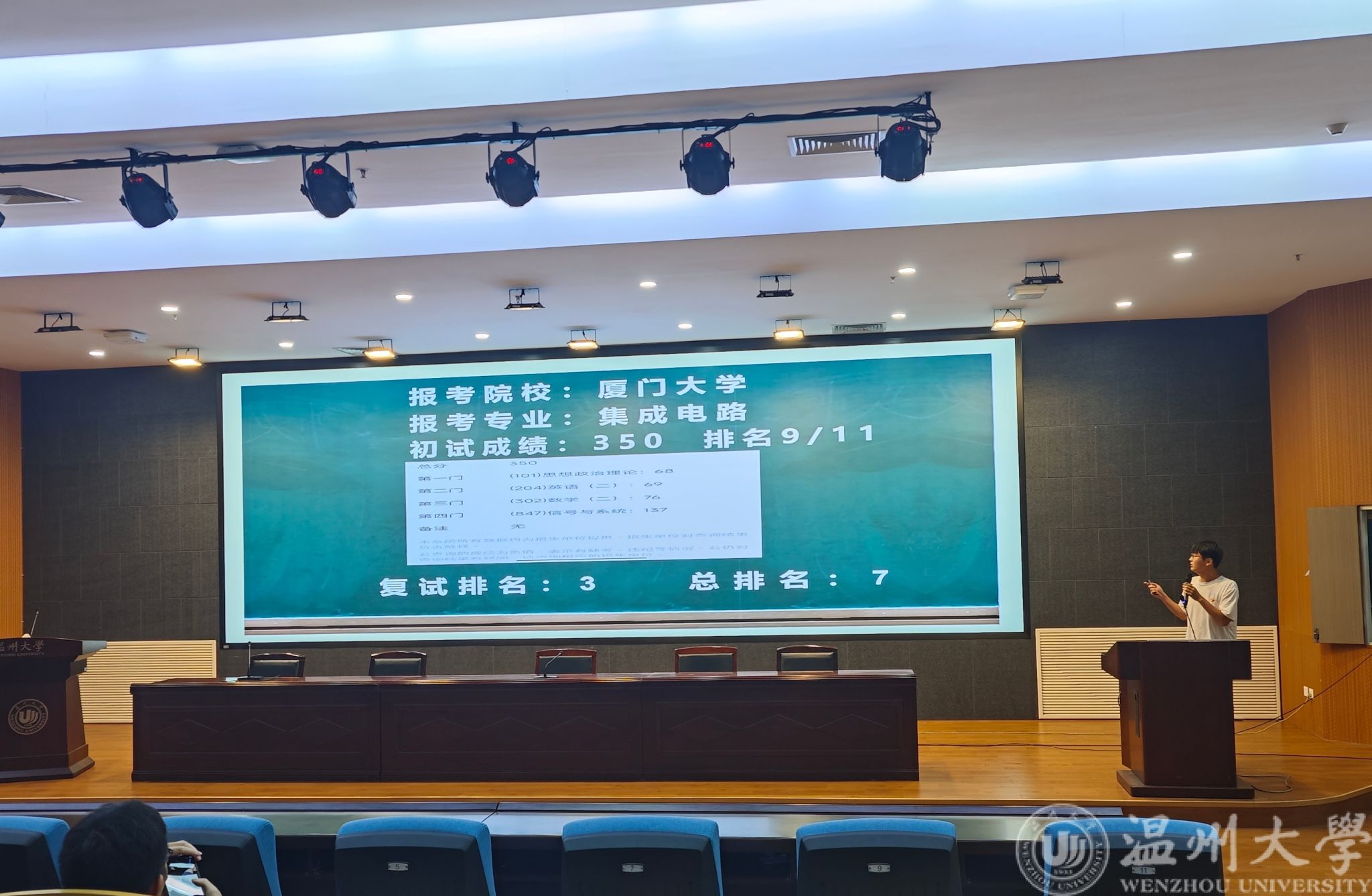 会议伊始,庄老师简单介绍了参与本次分享会的优秀学子,并寄语考研学子结合自身学习特点选择院校,也鼓励同学们报考温大本校、本专业的研究生。