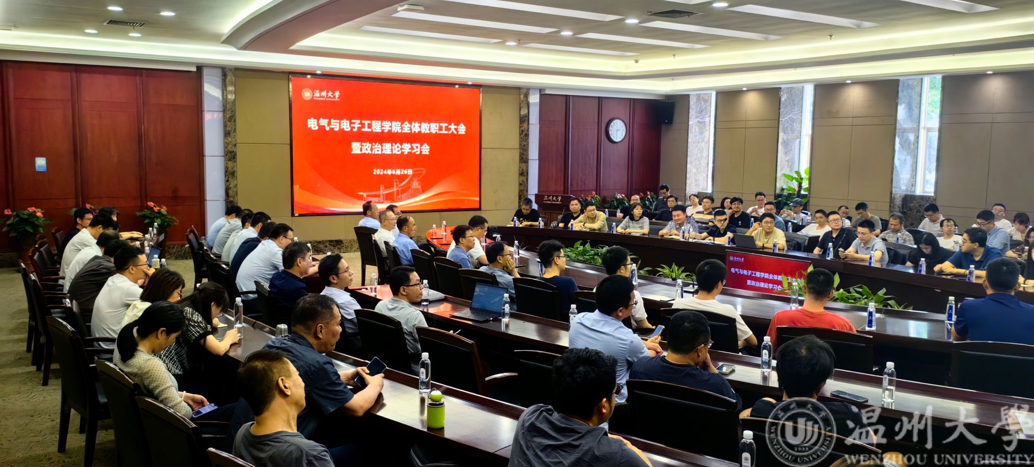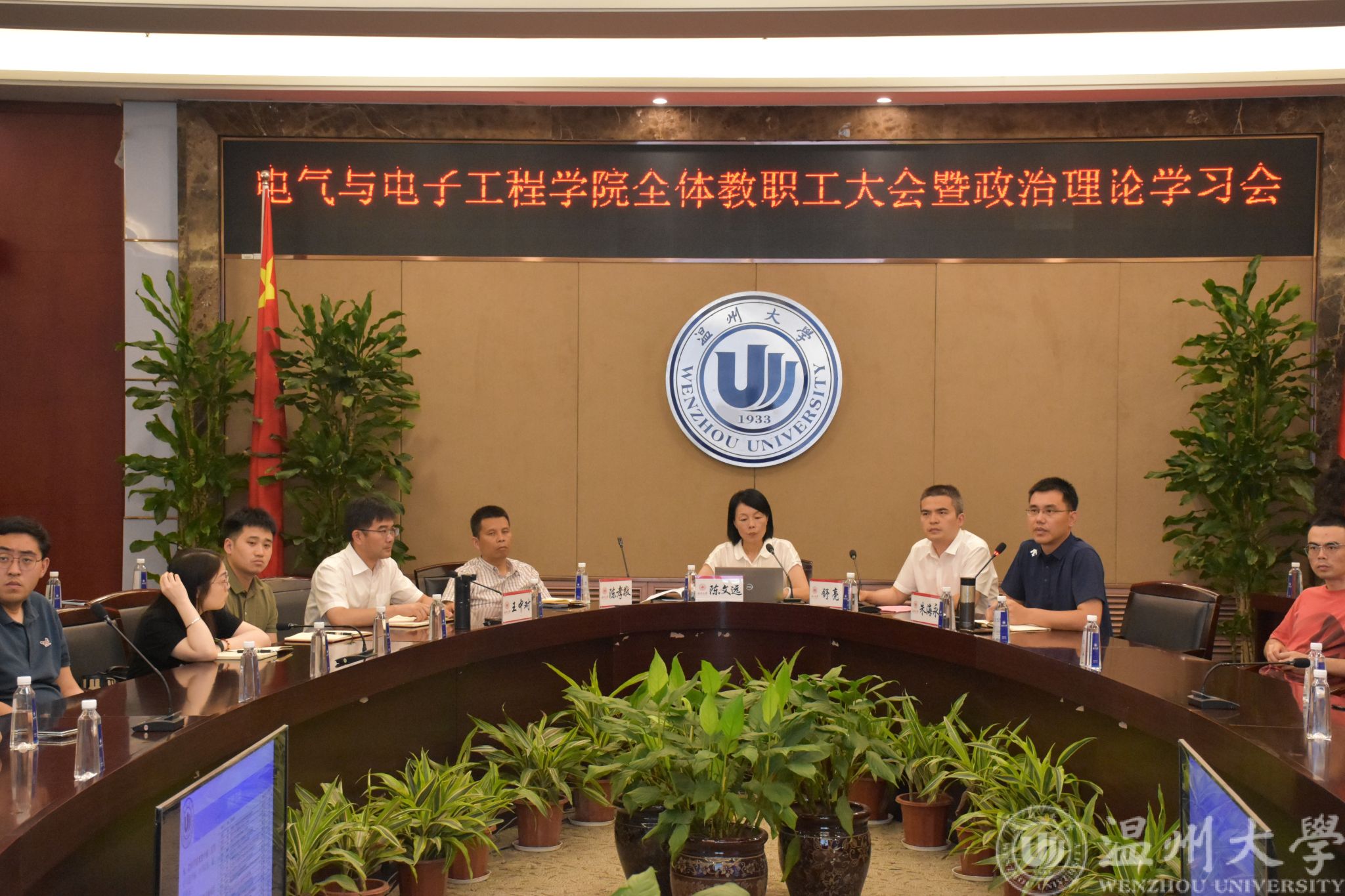6月26日下午,蜜桃视频 在岩松堂白鹿厅召开全院教职工大会暨政治理论学习会,学院新一任班子成员及全体教职工参加会议。会议由学院党委书记陈文远主持。