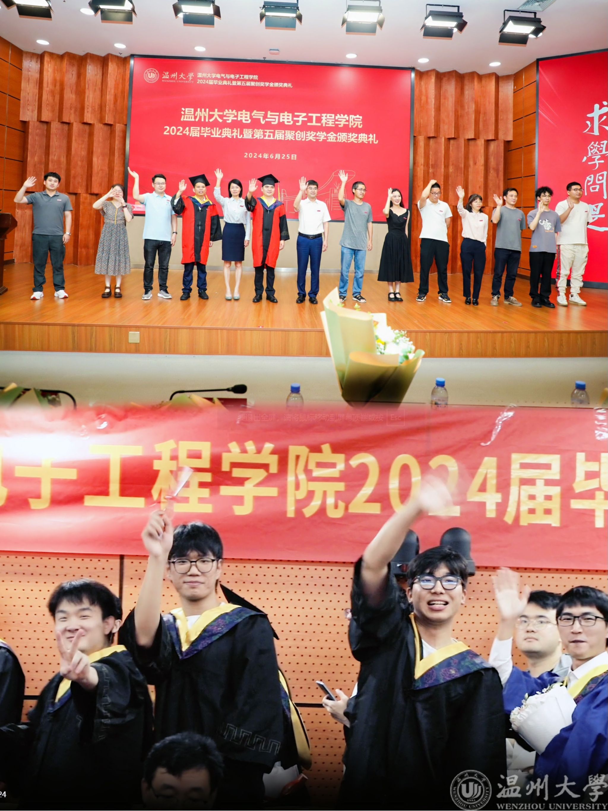 仲夏六月,骊歌唱响。6月25日下午,蜜桃视频 2024年毕业典礼暨“聚创奖学金"颁奖仪式在激扬的国歌声中拉开帷幕,全体学院领导,浙江聚创智能科技有限公司董事长、学院“聚创奖学金”赞助者吴桂初教授,各系主任,科室负责人,毕业班班主任,全体辅导员,全体毕业生和家长代表等参加典礼。学院党委副书记王中对主持。