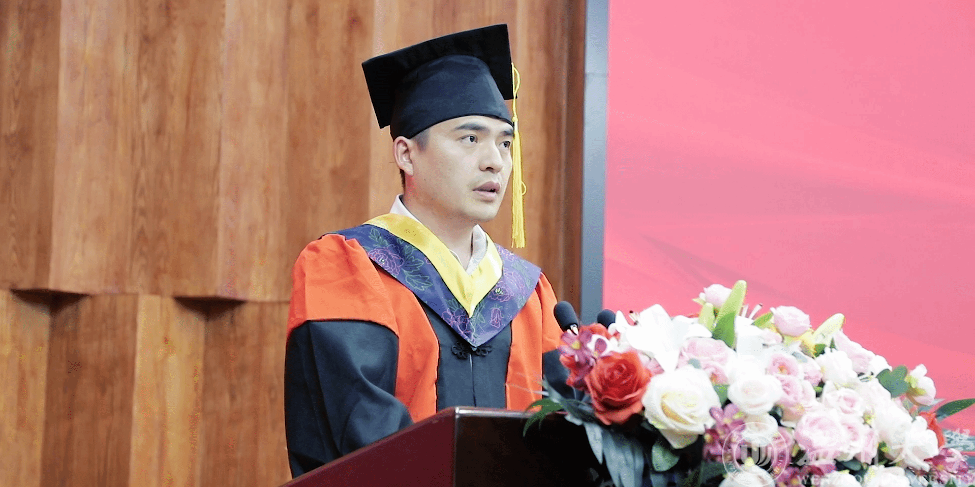 研究生代表刘康和本科生代表史贽豪分别上台发言。他们用自己的亲身经历和感悟,讲述了在校学习和生活经历。他们的发言中充满了对母校的眷恋和对未来的憧憬,表达了对母校、母院的感激之情,也分享了自己对未来的规划和梦想。