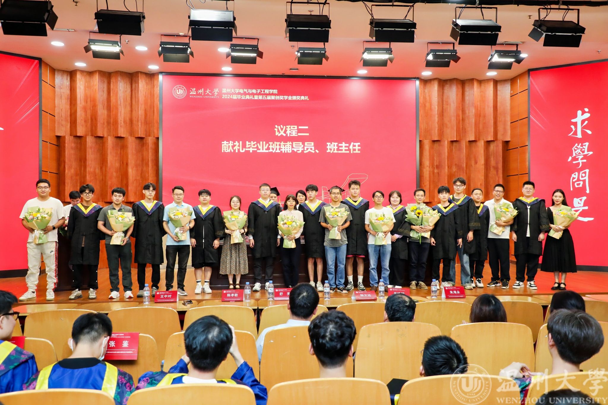 教诲如春风,师恩似海深。毕业生代表向默默奉献、育人不倦的辅导员和班主任献上鲜花,感恩他们用智慧和汗水,陪同度过大学时光,指明前进方向,同时也向每一位辛勤耕耘和无私奉献的老师们表示最真挚的感谢。