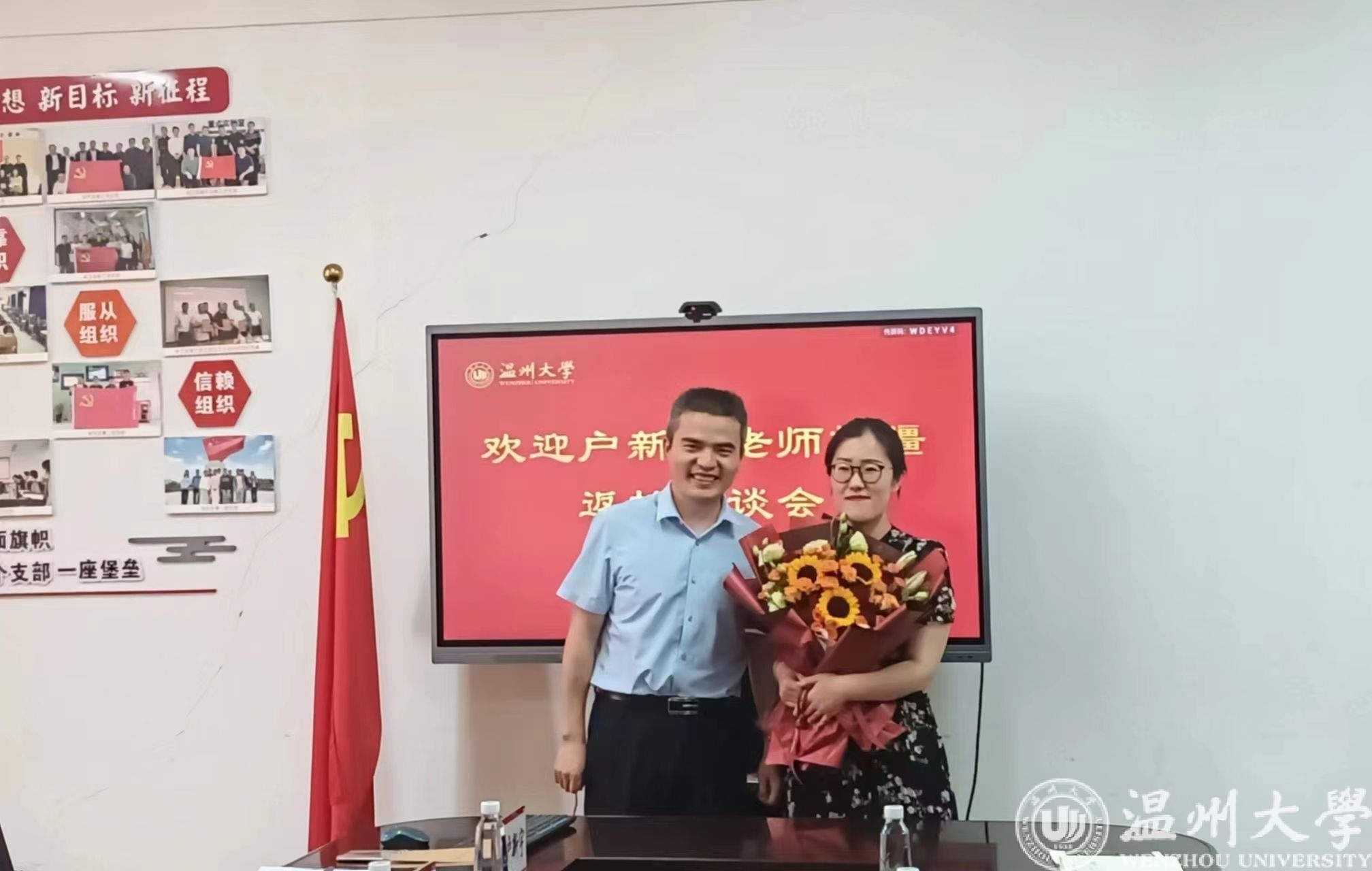 副院长舒亮代表学院为户新宇老师赠送鲜花,祝贺户老师圆满完成援疆任务,凯旋归来。
