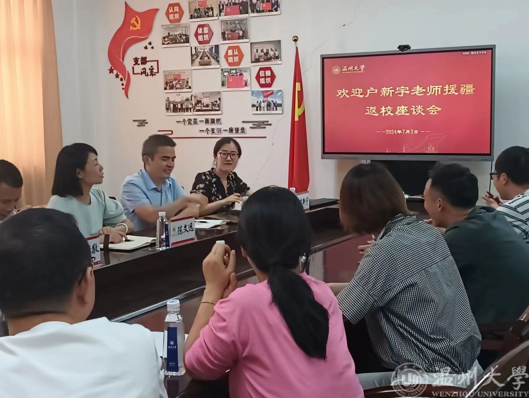 7月3日下午,蜜桃视频 在学院会议室召开了欢迎户新宇老师援疆返校座谈会。学院领导班子、科室负责人、系主任、支部书记、工会主席、妇联主席、户新宇老师所在团队成员、教师代表等参加会议。会议由学院党委书记陈文远主持。
