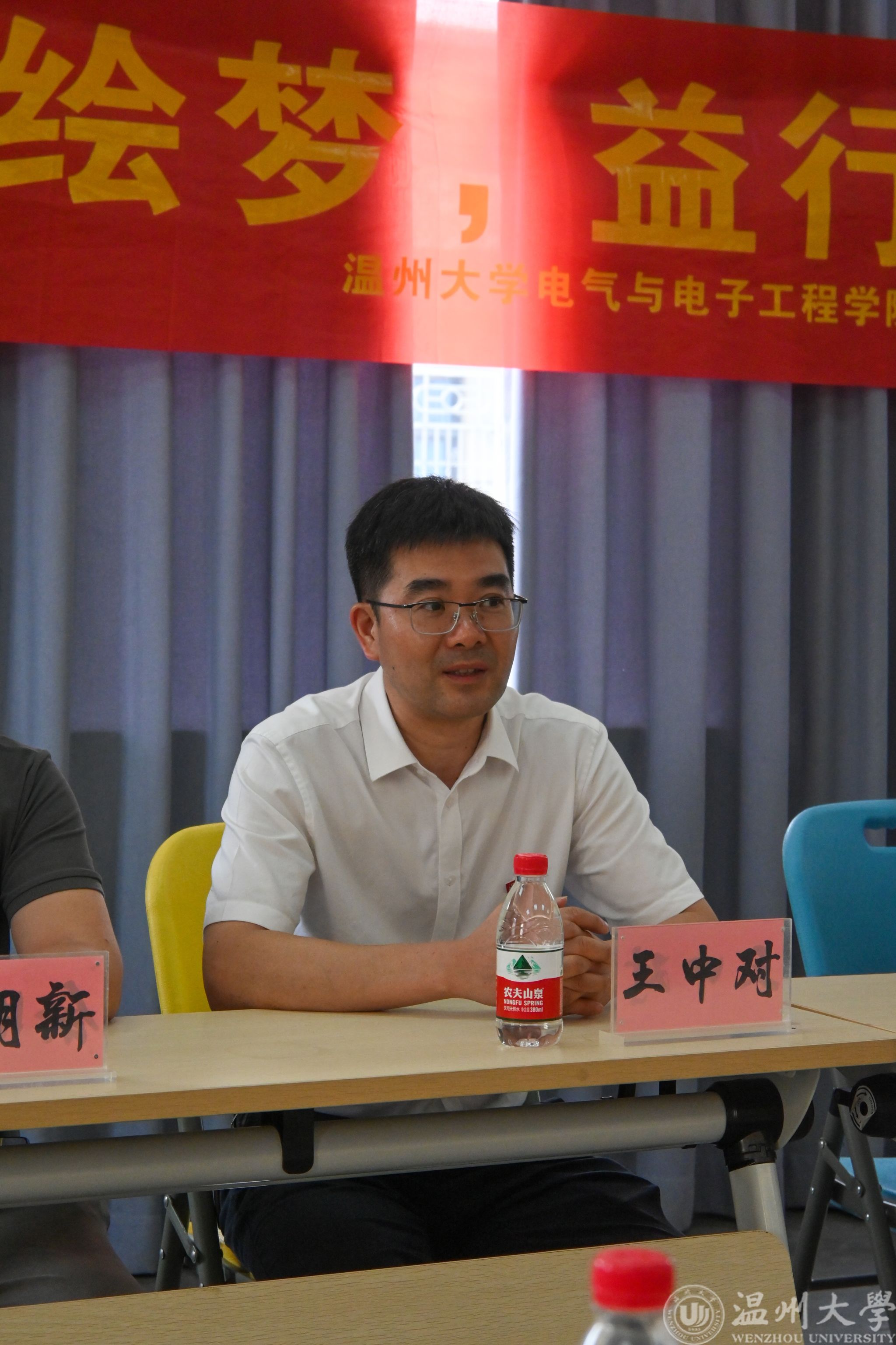 王中对副书记对益行实践队的实践活动和整体风貌,进行了肯定与赞赏。他寄语实践队队员们:第一,绷紧安全之弦,除了要注意在实践队出征仪式上强调的几个方面的安全外,还要特别注意与智障人士交往的安全;第二,加强团队合作,不同学院的同学要多多相互交流学习,互帮互助,共同进步;第三,增强社会责任感,慈善事业需要大家共同出力,希望同学们以此为契机,展示温大学子担当,贡献助残青春力量。