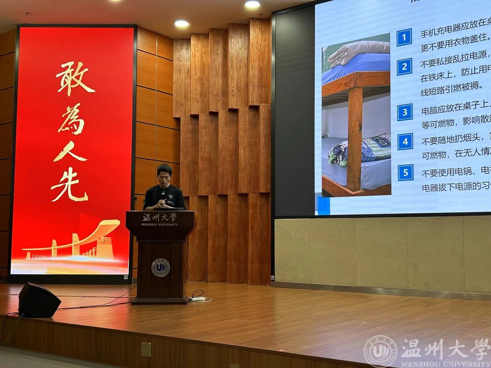 会议的高潮部分是由保卫处副处长钱合激老师带来的校园安全主题讲座。钱老师结合近年来校园内发生的典型案例,深入浅出地分析了校园安全面临的形势与挑战,重点讲解了消防安全、防盗防骗、网络安全等方面的知识与技巧。他强调,安全无小事,每一位同学都应提高安全意识,学会自我保护,共同维护校园的和谐稳定。