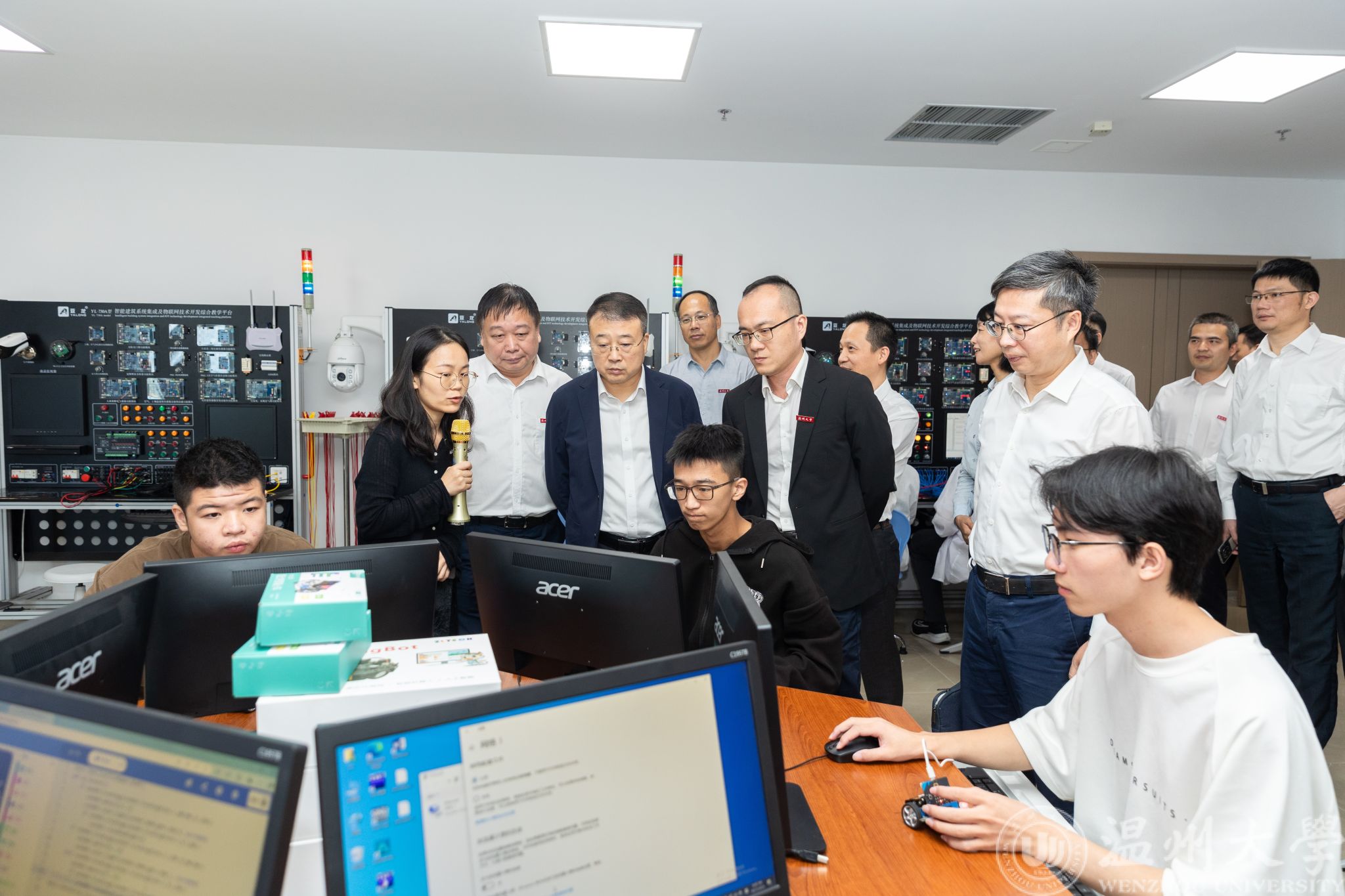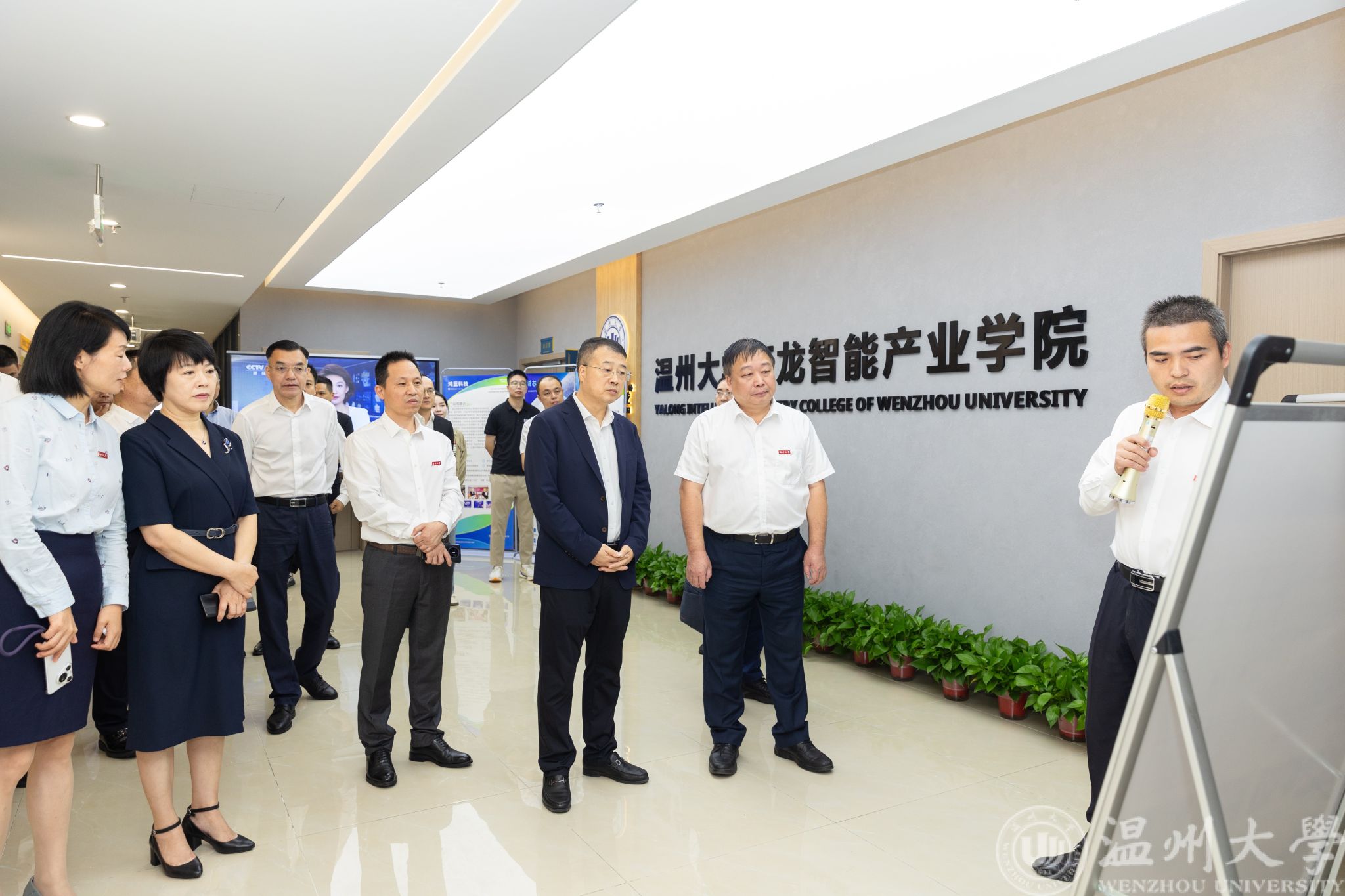 10月12日上午,温州市人民政府副市长王振勇一行莅临蜜桃视频 调研指导教育科技人才一体推进工作情况,并莅临亚龙智能产业学院考察指导。蜜桃视频 党委书记陈文远,副院长舒亮,产业学院执行院长朱志亮以及相关负责人热情接待陪同调研。