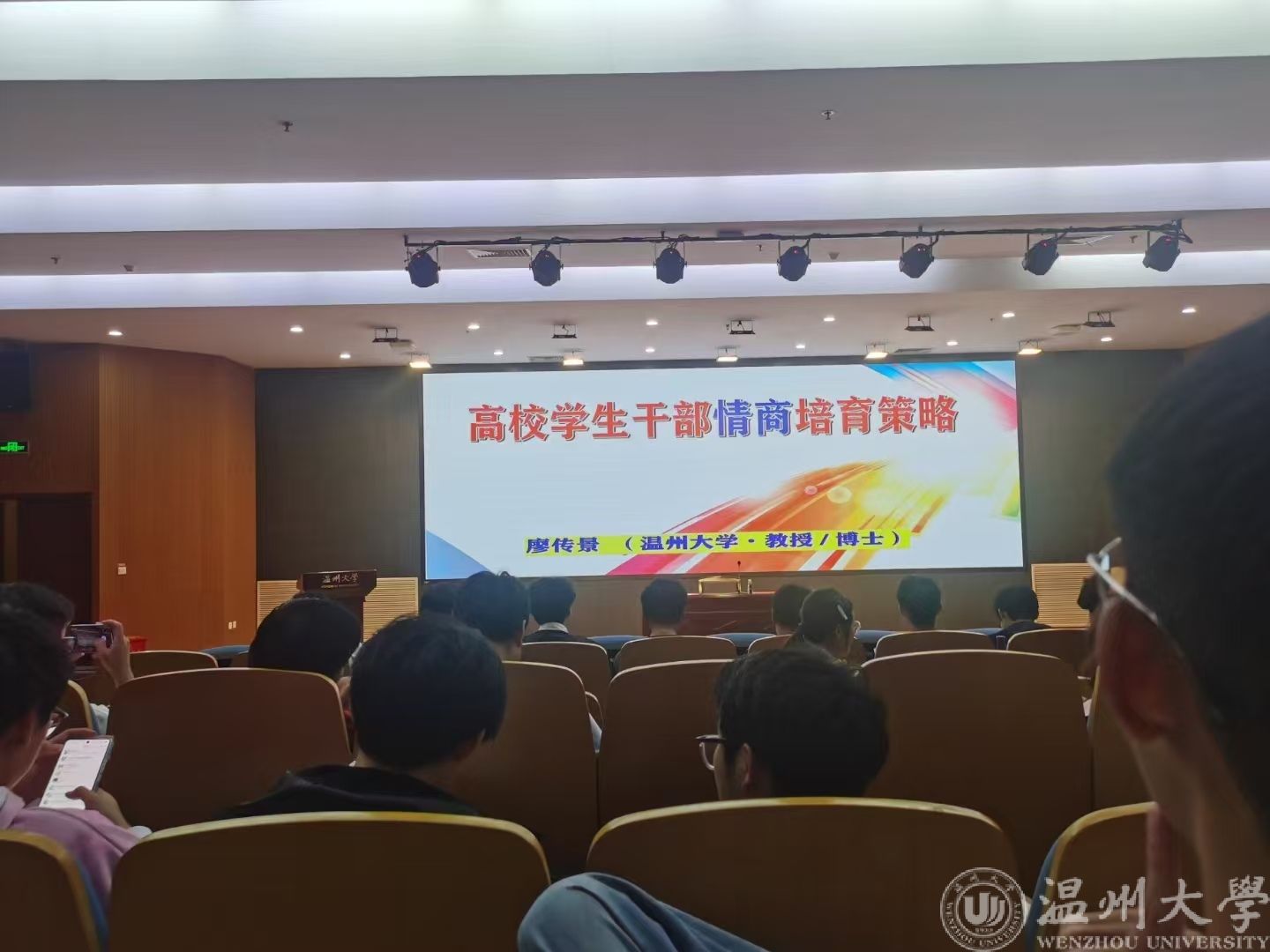 2024年11月4日晚18:30,蜜桃视频 大一全体学生干部在岩松堂步青厅开展本学期心理幸福课。本次课程由廖传景教授主讲,此次培训聚焦于一个至关重要却常被忽视的主题——学生干部的情商培育。廖老师以其深厚的学术底蕴和丰富的实践经验,生动诠释了情商在学生干部成长与发展中的不可替代作用。