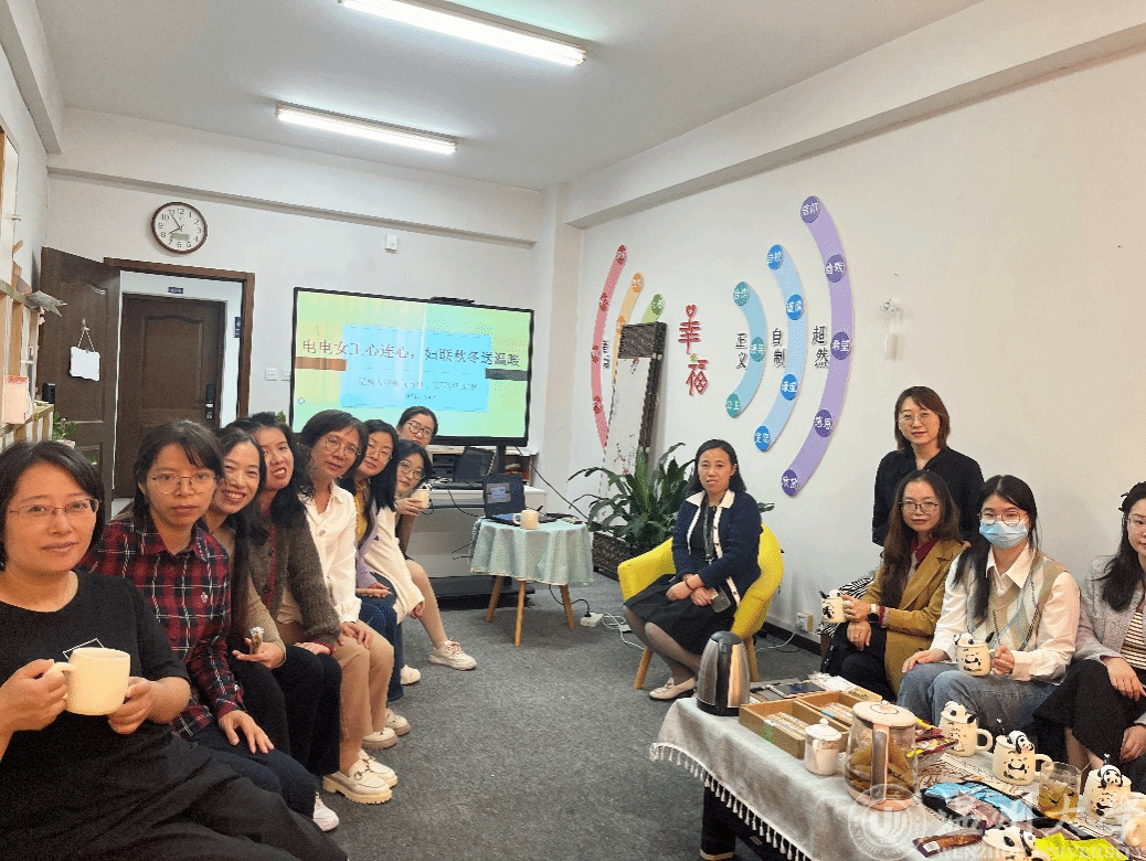 2024年11月6日下午15:30,蜜桃视频 妇联举办“电电女工心连心,妇联秋冬送温暖”活动。学院妇联为学院女教工送上精美创意马克杯、精美点心和秋冬热饮为大家带来温暖和慰问,老师们自发布置活动会场,不一会儿活动现场咖啡香味四溢,伴随着老师们的热聊缓解身心压力放松心情。随后。妇联组织老师们观看了养生视频《黄帝内经与养生》,听专家讲解“春夏养阳,秋冬养阴”以及“在必死无疑的生命中,如何延缓衰老”,学会在人生不同年龄调养身心并在四季轮回中顺应时节发展。老师们听的聚精会神,专家讲解的内容引发了老师们的浓厚兴趣,偶尔和身边人悄悄讨论并频频点头。学院女教师们之间沟通工作与生活中的心得,分享经验联络感情,丰富了学院女教师的养生文化生活,促进女教工身心健康,有助于营造和谐融洽、团结向上的学院文化氛围。