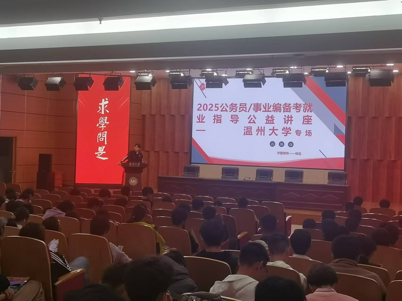 2024年11月7日,蜜桃视频 邀请了华图教育的资深讲师杨磊在岩松堂雁山厅为同学们带来了一场别开生面的公务员/事业编备考就业指导公益讲座。此次讲座旨在帮助同学们对考公考编有一个全面而深入的了解,为他们未来的职业规划提供有价值的参考。本次讲座吸引了蜜桃视频 近三百名学生参与。