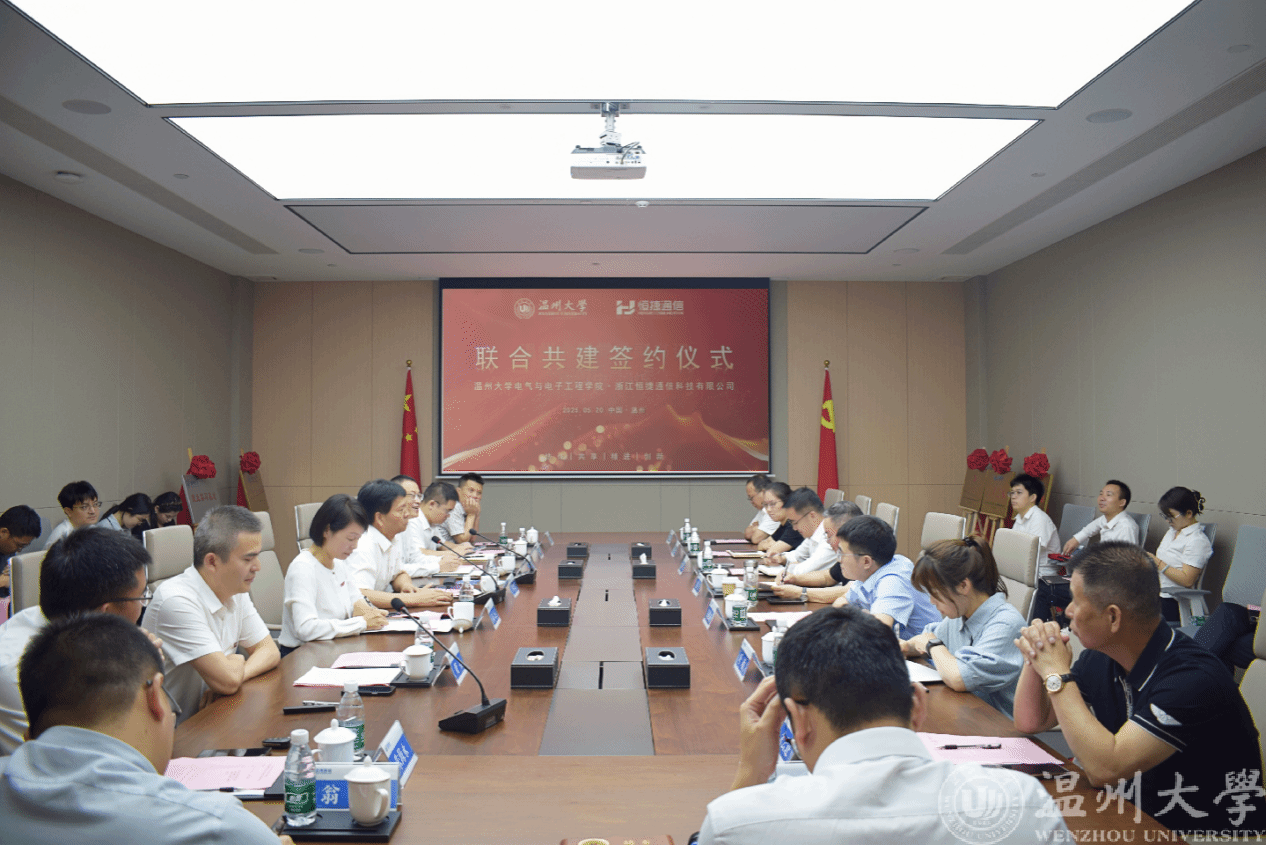 5月21日上午,蜜桃视频 与恒捷通信举行联合共建签约活动。校党委副书记庄兴忠、相关职能部门负责人,温州市国动办、瓯海区发改局相关负责人,瓯海区南白象科创智能中心企业代表,恒捷通信主要负责人及相关人员,学院全体班子成员和教师代表等出席活动。