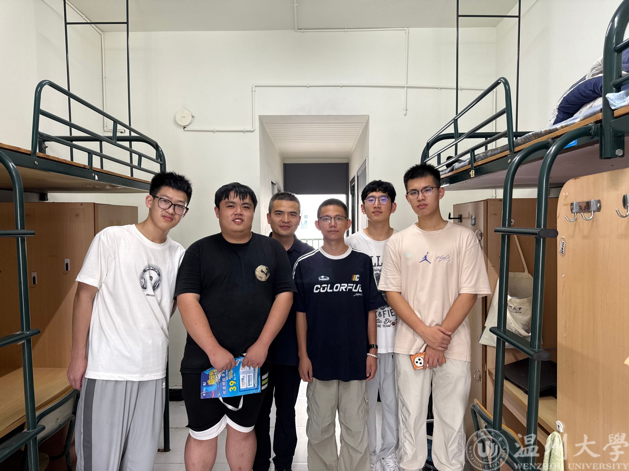 走访期间,学院领导与同学们亲切交流,细致关心大家开学后的生活适应情况,陈文远书记勉励同学们把握青春年华,扎实打好专业基础,不断提升综合能力,为未来成长奠定坚实根基。在谈到学业规划时,舒亮副院长指出,大一是大学生活的关键阶段,课业难度和学术要求将相对于高中进一步提高,他希望同学们端正态度、迎难而上,同时积极参与科创竞赛,以赛促学、拓展视野。翁浩副书记则就寝室氛围建设提出殷切期望,鼓励同学之间团结友爱、互帮互助,营造和谐融洽、共同进步的生活共同体。各位老师反复强调,要坚决守住安全底线,严禁在宿舍开展任何形式的宗教活动,持续维护整洁、文明、有序的住宿环境,切实保障身心健康与校园稳定。