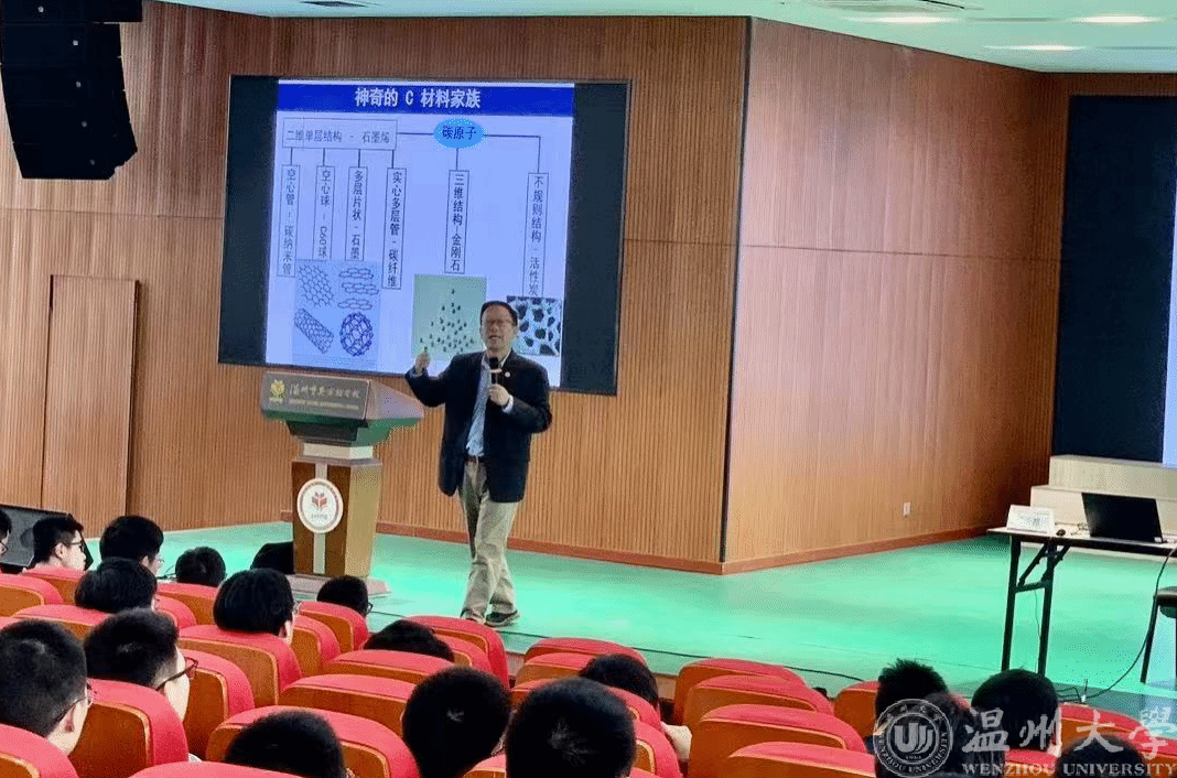在担任温州物理学会理事长期间,董长昆教授始终积极推动科普教育的开展与深化。他通过“科普进校园”系列活动,走进温州市多所中学,以“碳材料与纳米技术”为主题,为青少年带来一场场生动而前沿的科学讲座,在无数年轻心灵中点燃了对科学的兴趣火花。这些讲座不仅拓宽了学生们的科学视野,更在他们心中悄然撒下了热爱探索、勇于提问的种子。一位曾聆听讲座的中学生感慨道:“董教授的讲述让我真正看到了科学的魅力与温度,我也希望未来能像他一样,为祖国的科学发展贡献自己的力量。”