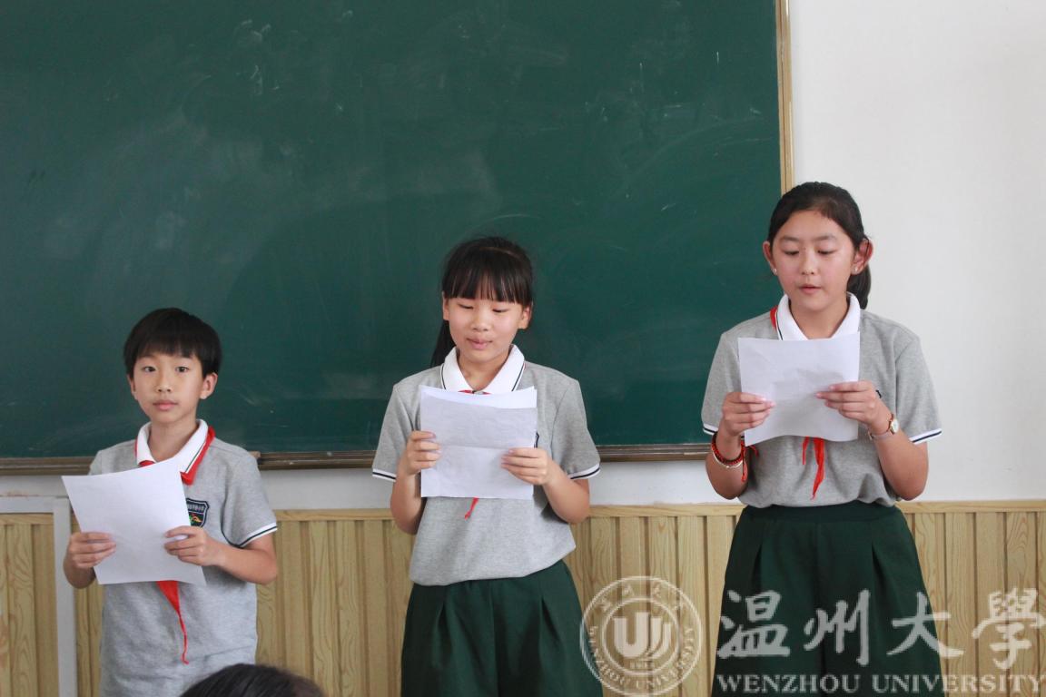 在华侨小学会议室里,院校领导和暑期实践队员们进行了座谈会。实践队队长张佳其向到场领导老师汇报了实践队的基本情况和近日的成果,华侨小学校长蓝建明介绍了学校的基本概况,同时向“童馨”暑期社会实践多年来在暑期和平时周末的支教付出表达了谢意。丽岙街道团委周老师对吴书记等学校老师的到来表示欢迎,并表示政府和学校都会对进行实践的大学生队伍给予大力支持,确保同学们顺利完成任务。最后吴金法书记做总结讲话,他代表学校对丽岙街道和华侨小学对大学生实践队的支持和帮助表示感谢,叮嘱同学们珍惜实践机会,认真准备教学。同时他还对实践队提出了要求,希望同学们能够在实践队优秀的历史成绩上,有所提升,再创佳绩。捧一颗爱心来,带一颗童心回。