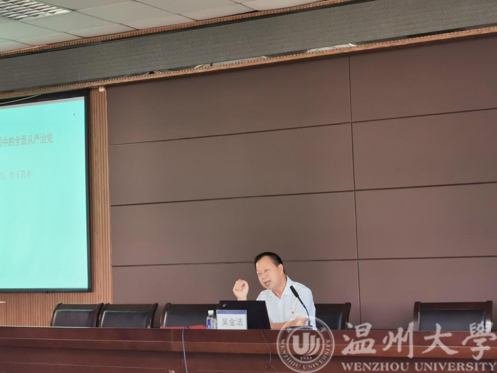 10月18日上午10点,校纪委吴金法书记在南校区11C401室进行了一场题为“全面从严治党永远在路上”的主题党课,蜜桃视频 师生党员参加了学习。